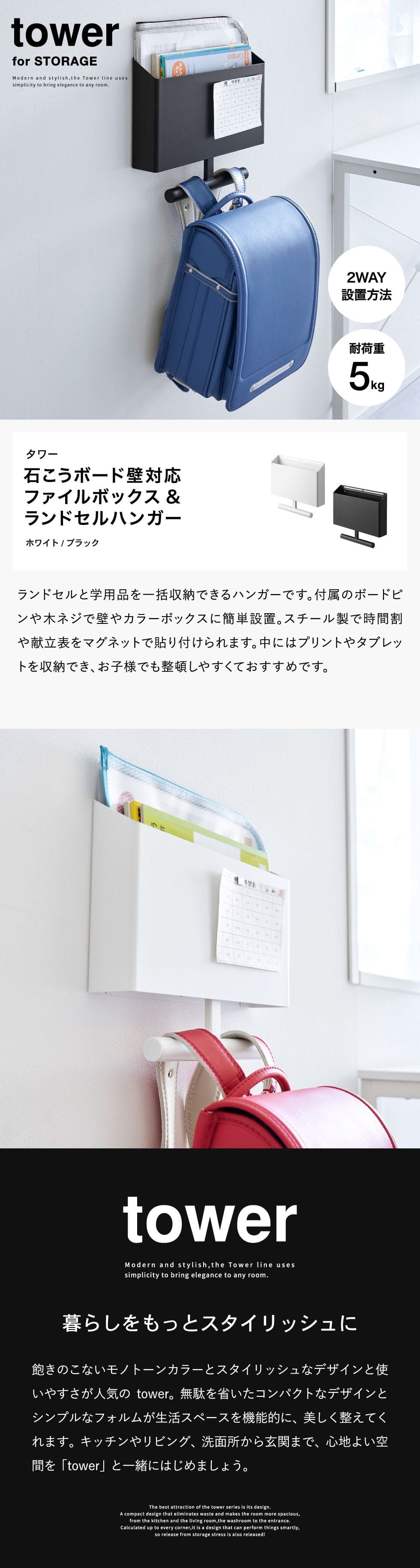| ウォールファイルボックス&ランドセルハンガー タワー 石こうボード壁対応 |