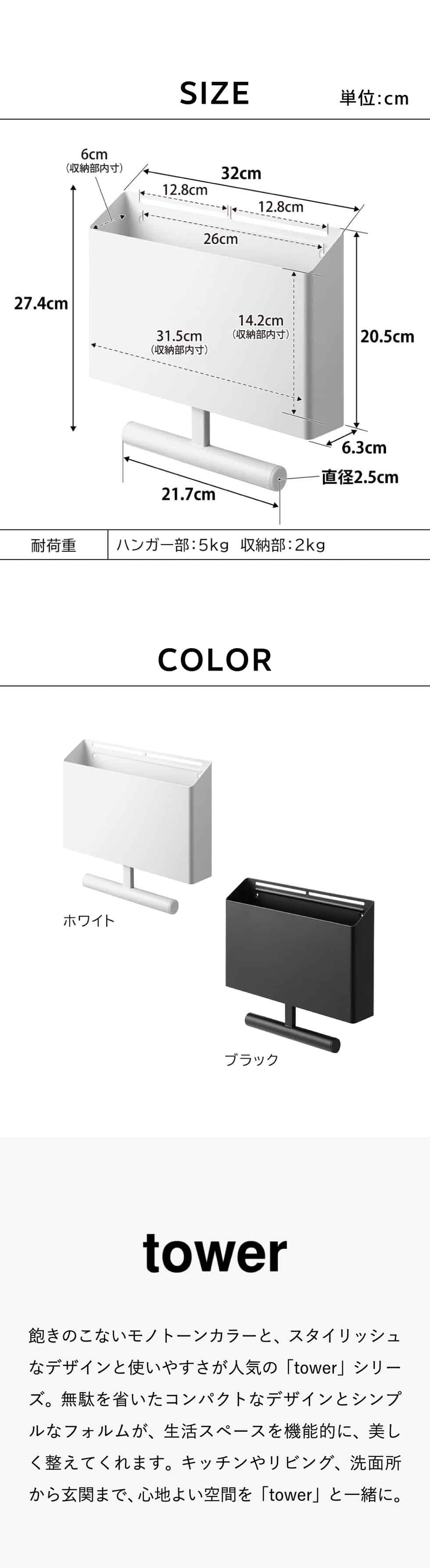 耐荷重 ハンガー部:各5kg 収納部:2kg |