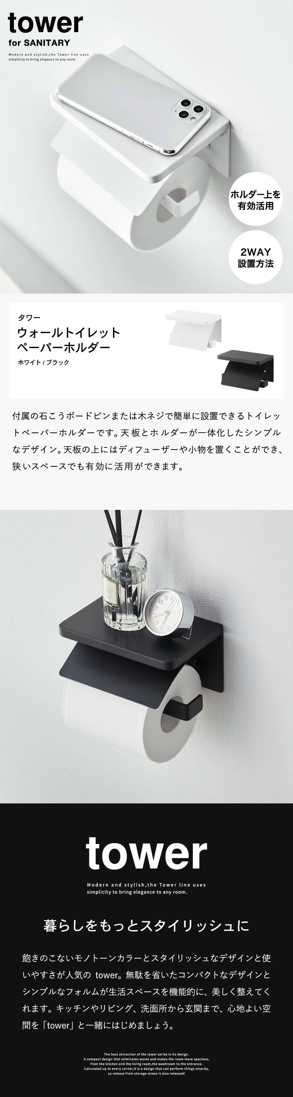 ホワイトとブラックを中心とした飽きのこないモノトーンカラーと、どんなインテリアにもスッと馴染むスタイリッシュなデザイン。そして、とことんシンプルながら、より豊かな暮らしを提案するアイデアがたくさん詰まった、使いやすいアイテムが人気です。無駄を省いたコンパクトなデザインと、シンプルなフォルムが生活スペースを機能的に、美しく整えてくれます。towerのアイテムをライン使いすれば、すっきりとした統一感が生まれ、お洒落でシックな雰囲気を演出します。キッチンやリビング、洗面所から玄関まで揃えたくなるtowerシリーズで、毎日の暮らしを彩る心地よい空間を。