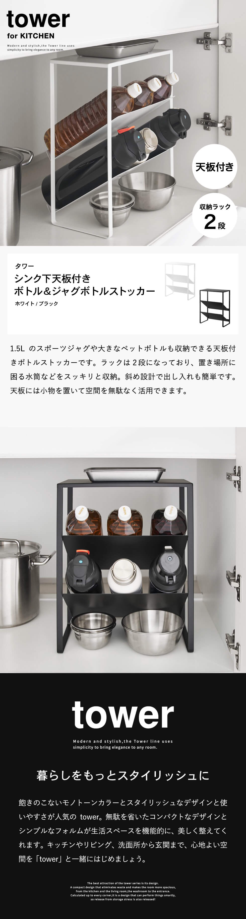| シンク下天板付きボトル&ジャグボトルストッカー タワー |