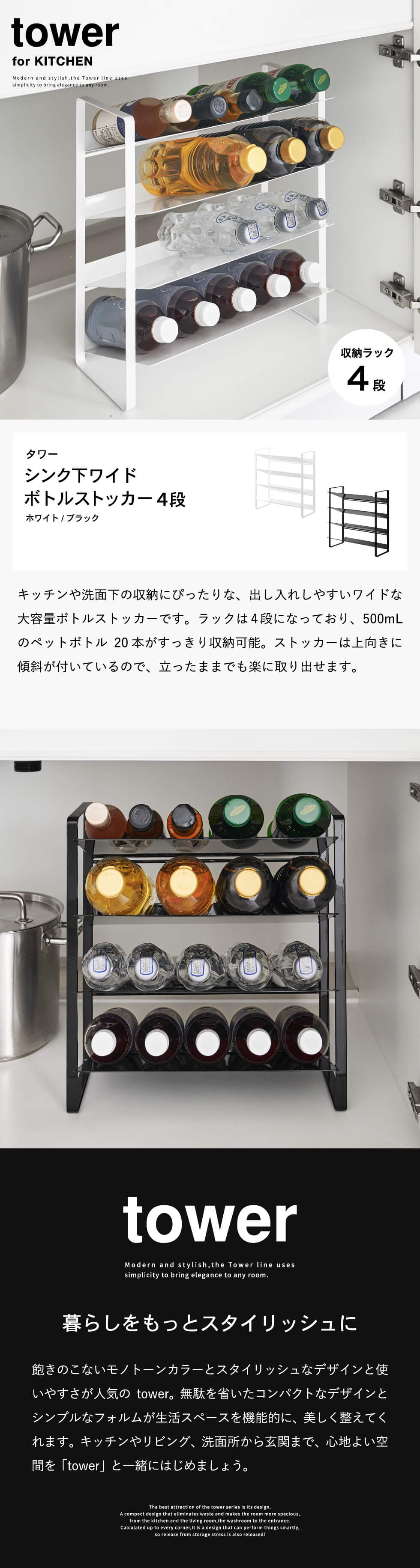 | シンク下ワイドボトルストッカー タワー 4段 |
