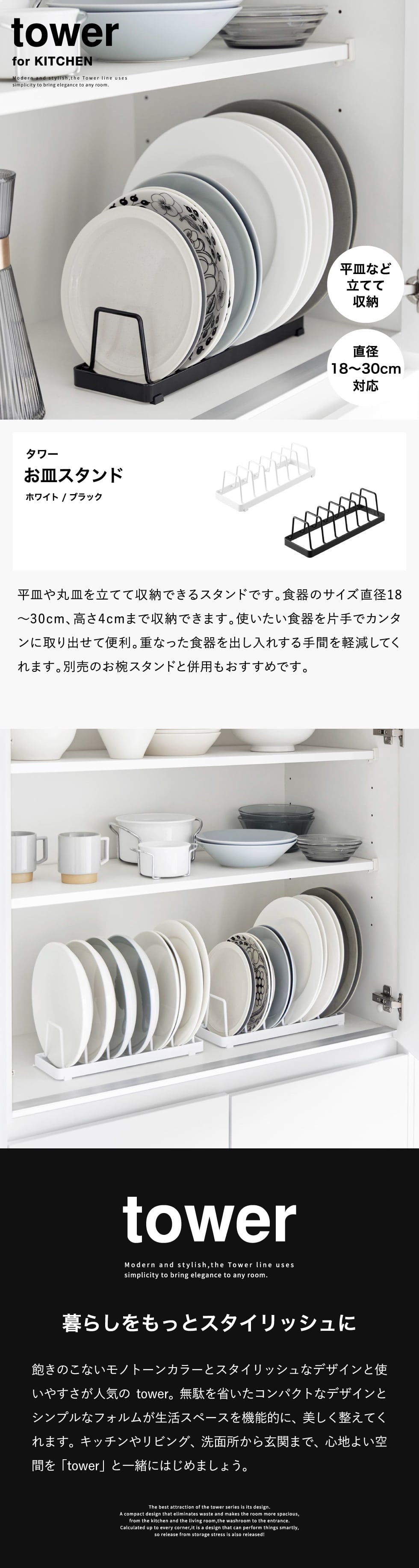 お皿スタンド タワー 山崎実業 公式 tower ホワイト ブラック 1375 1376 / ディッシュスタンド