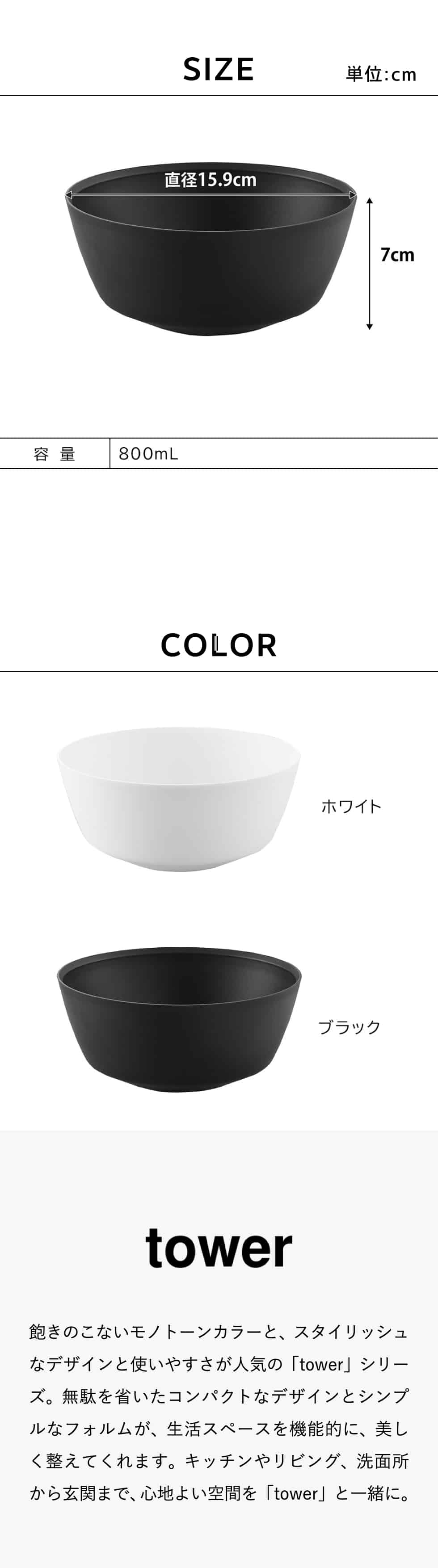 ホワイトとブラックを中心とした飽きのこないモノトーンカラーと、どんなインテリアにもスッと馴染むスタイリッシュなデザイン。そして、とことんシンプルながら、より豊かな暮らしを提案するアイデアがたくさん詰まった、使いやすいアイテムが人気です。無駄を省いたコンパクトなデザインと、シンプルなフォルムが生活スペースを機能的に、美しく整えてくれます。towerのアイテムをライン使いすれば、すっきりとした統一感が生まれ、お洒落でシックな雰囲気を演出します。キッチンやリビング、洗面所から玄関まで揃えたくなるtowerシリーズで、毎日の暮らしを彩る心地よい空間を。