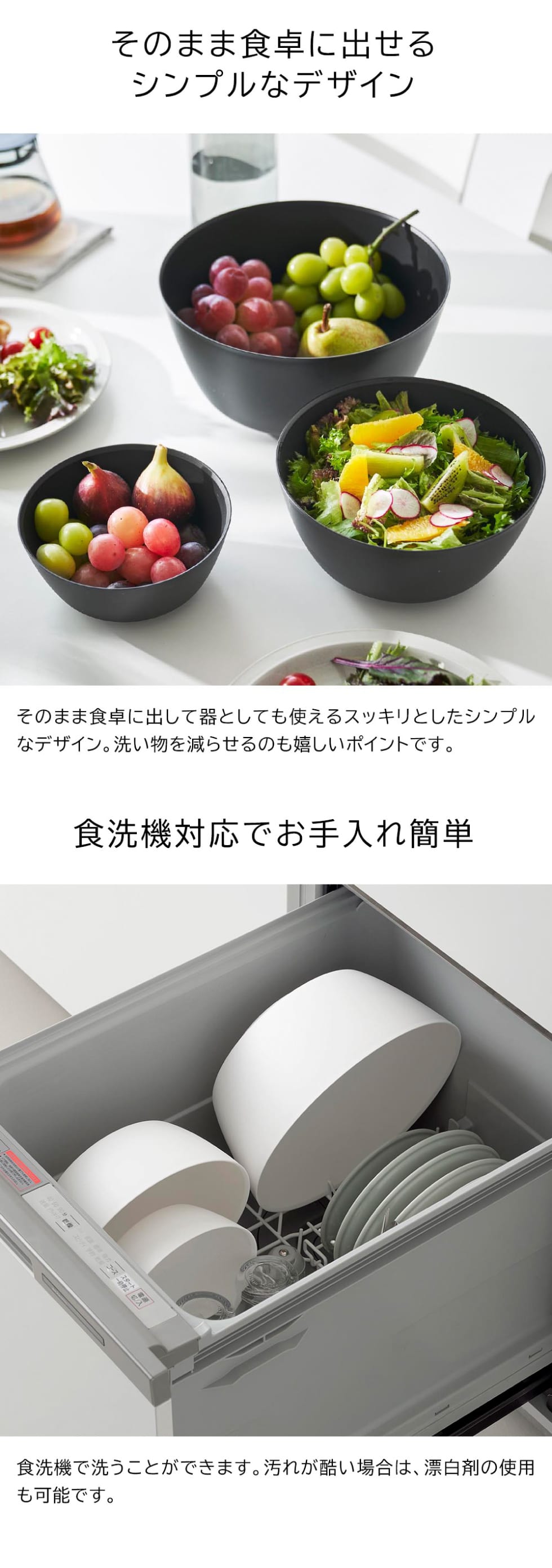 品質表示 ボウル(S・M・L):ポリプロピレン |