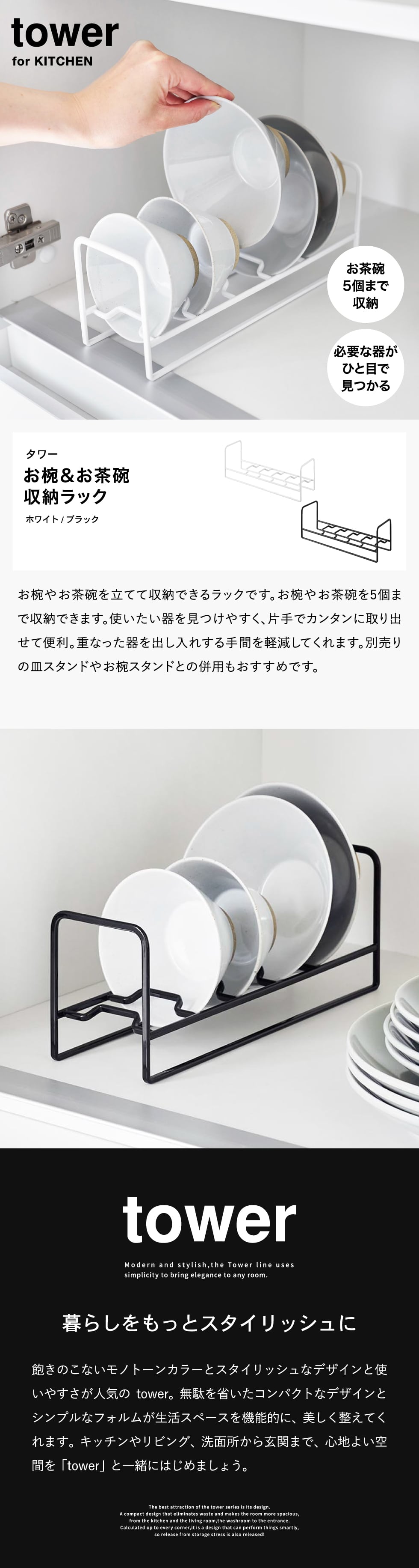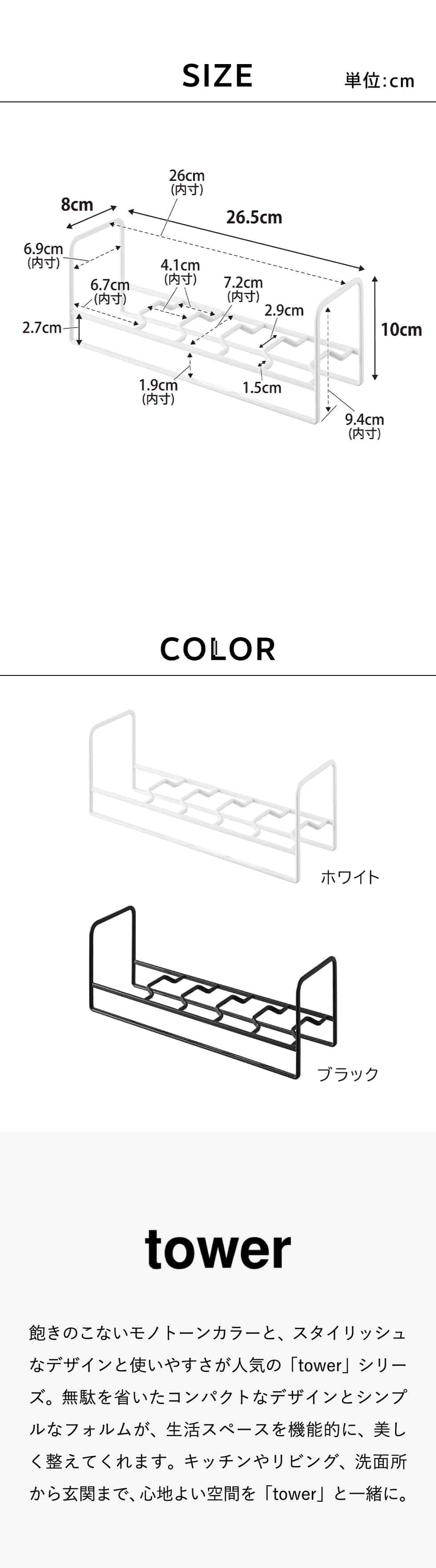 ホワイトとブラックを中心とした飽きのこないモノトーンカラーと、どんなインテリアにもスッと馴染むスタイリッシュなデザイン。そして、とことんシンプルながら、より豊かな暮らしを提案するアイデアがたくさん詰まった、使いやすいアイテムが人気です。無駄を省いたコンパクトなデザインと、シンプルなフォルムが生活スペースを機能的に、美しく整えてくれます。towerのアイテムをライン使いすれば、すっきりとした統一感が生まれ、お洒落でシックな雰囲気を演出します。キッチンやリビング、洗面所から玄関まで揃えたくなるtowerシリーズで、毎日の暮らしを彩る心地よい空間を。