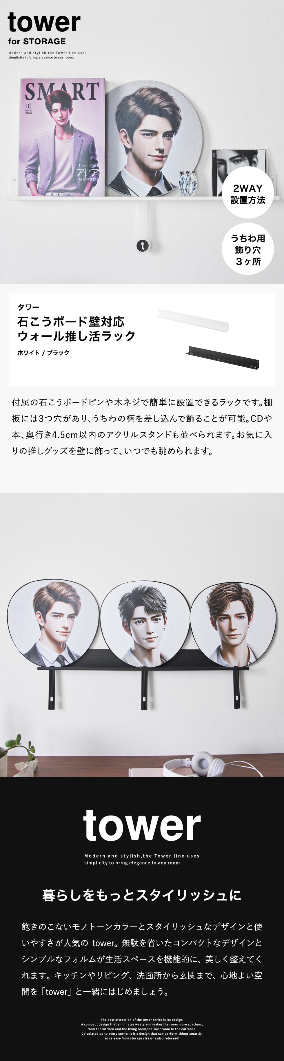 | ウォール推し活ラック タワー 石こうボード壁対応 |