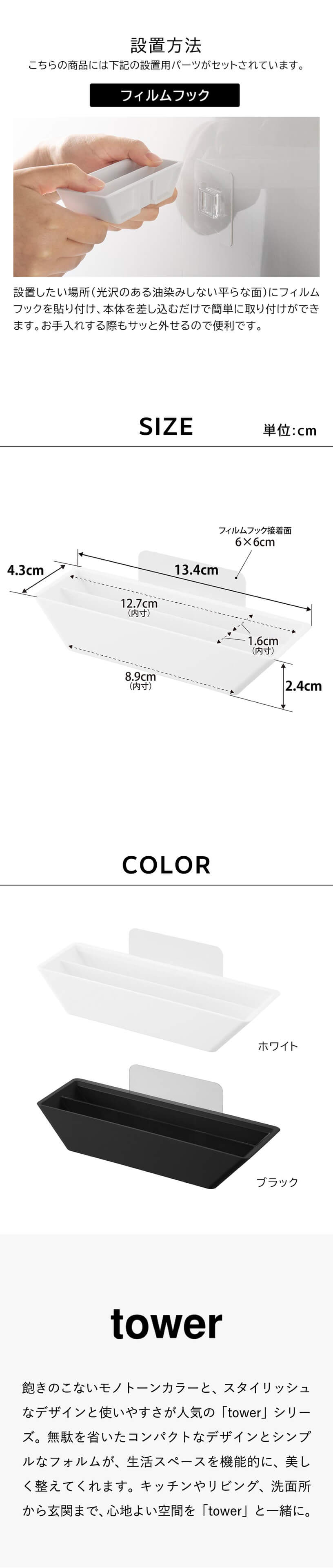 商品サイズ 本体:W13.4×D4.3×H2.4cm(フィルムフック含まず) フィルムフック接着面:W6×H6cm |