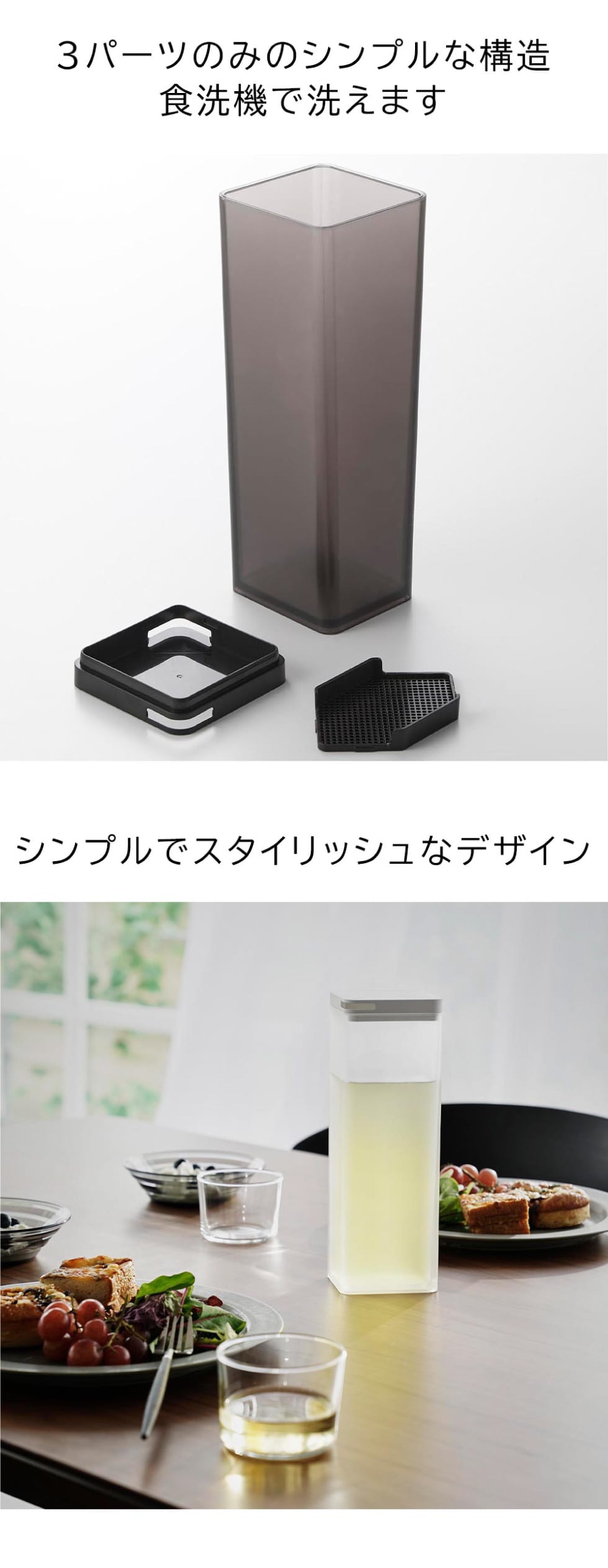 水はね防止フィルター付き両方から注げる冷水筒 タワー 山崎実業 公式 tower 10237 10238 ホワイト ブラック / 1.2L ピッチャー
