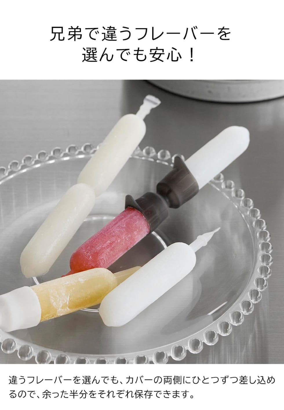 残った半分の断面をカバーして冷凍庫に戻すことができるアイスカバーです。食洗機OK。冷凍庫OK。