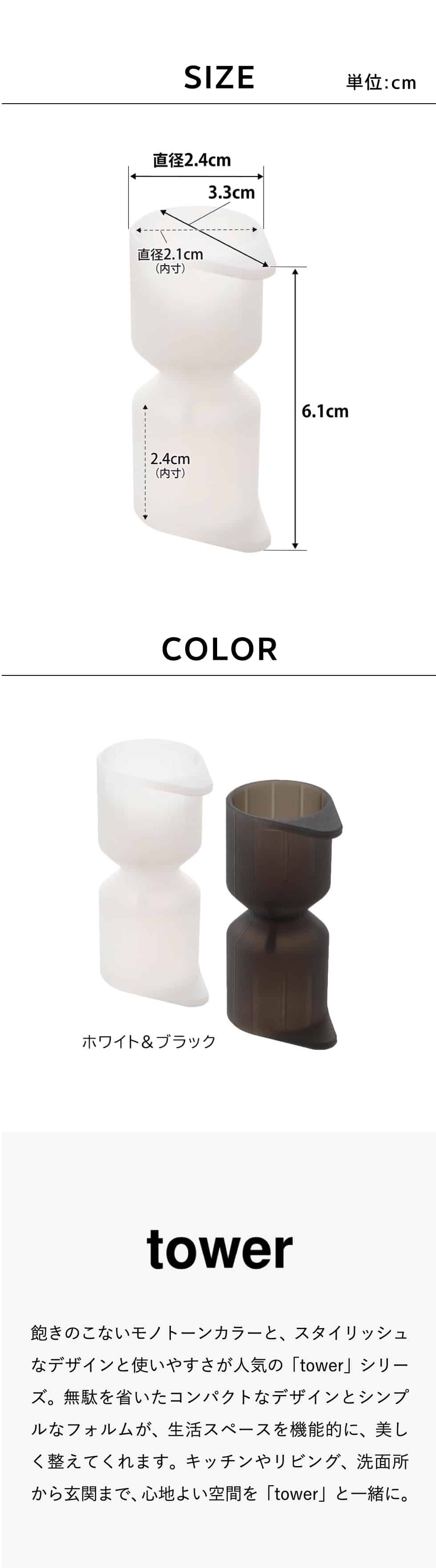 ホワイトとブラックを中心とした飽きのこないモノトーンカラーと、どんなインテリアにもスッと馴染むスタイリッシュなデザイン。そして、とことんシンプルながら、より豊かな暮らしを提案するアイデアがたくさん詰まった、使いやすいアイテムが人気です。無駄を省いたコンパクトなデザインと、シンプルなフォルムが生活スペースを機能的に、美しく整えてくれます。towerのアイテムをライン使いすれば、すっきりとした統一感が生まれ、お洒落でシックな雰囲気を演出します。キッチンやリビング、洗面所から玄関まで揃えたくなるtowerシリーズで、毎日の暮らしを彩る心地よい空間を。
