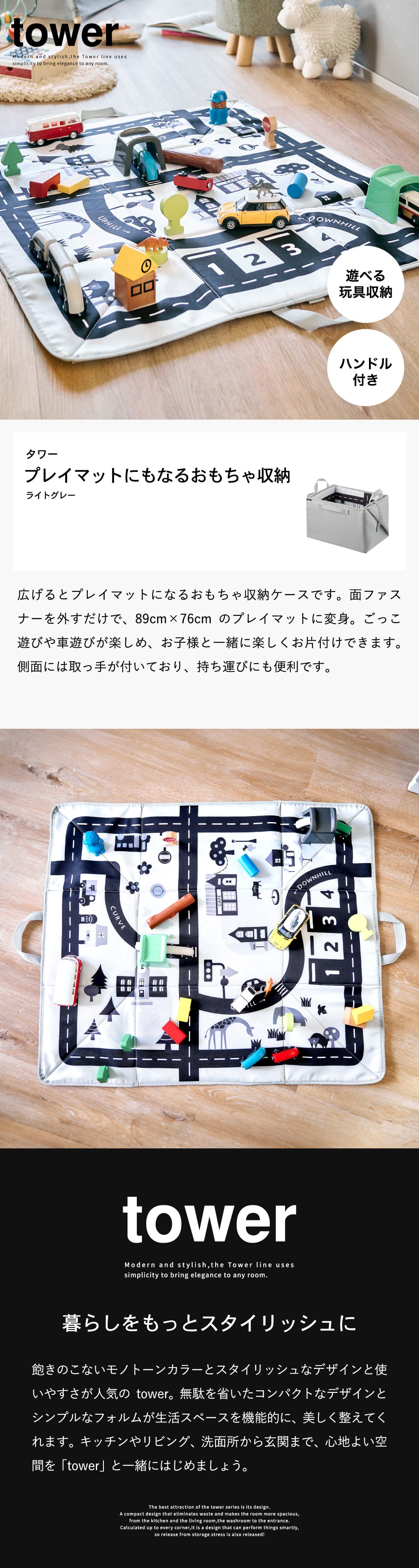 プレイマットにもなるおもちゃ収納 タワー 山崎実業 公式 tower 10169 ライトグレー 送料無料