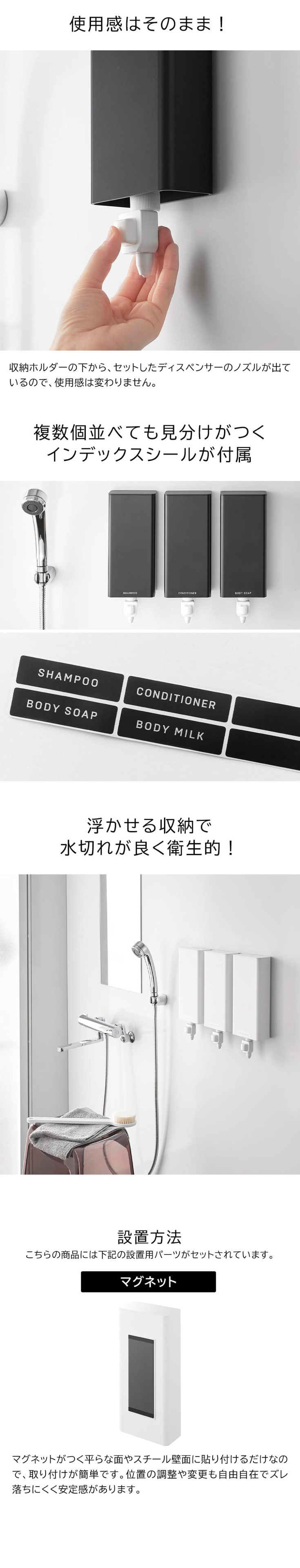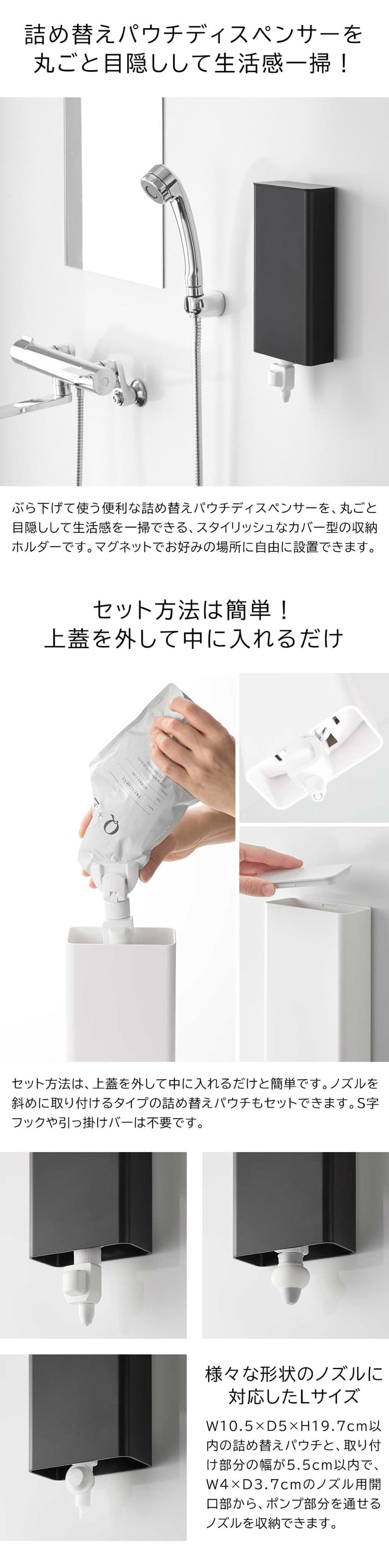 詰め替えパウチディスペンサーを丸ごと隠しながら壁面に浮かせて収納山崎実業 マグネットバスルーム詰め替えパウチディスペンサー収納ホルダー タワー Ltower シャンプー