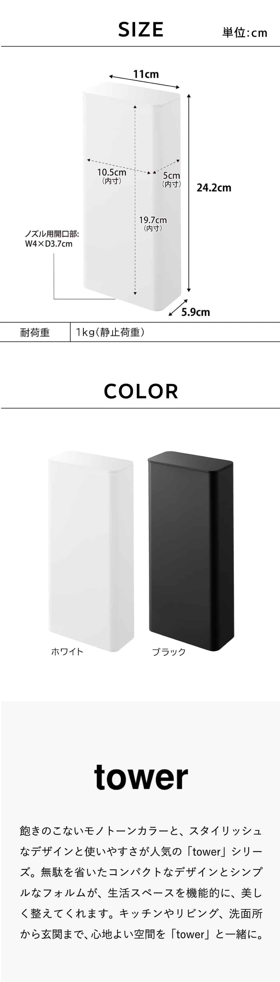 マグネットバスルーム詰め替えパウチディスペンサー収納ホルダー タワー L 山崎実業 tower 10141 10142 ホワイト ブラック