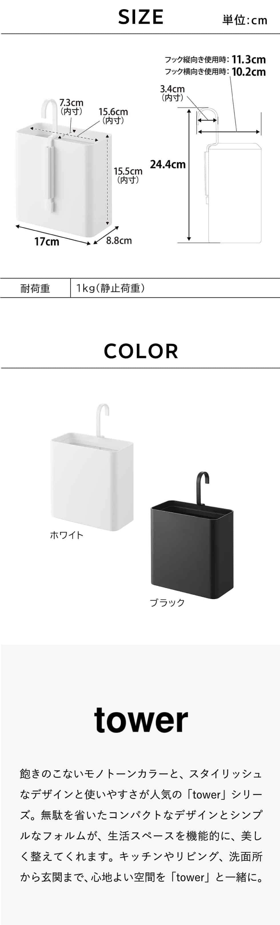 商品サイズ W17×D11.3×H24.4cm(フック縦向き使用時) W17×D10.2×H24.4cm(フック横向き使用時) |