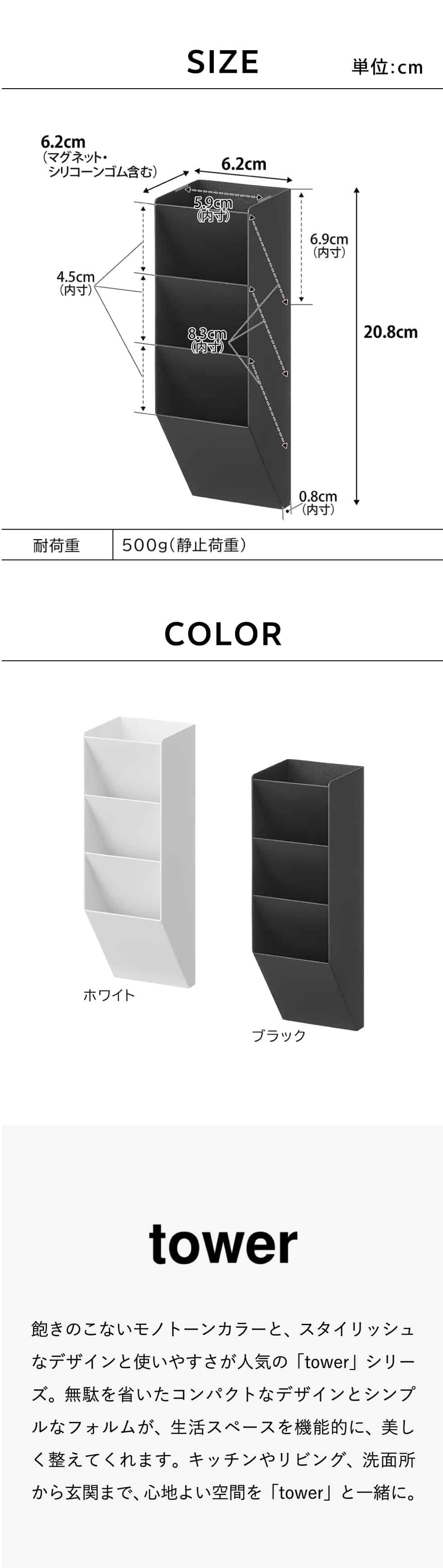 マグネットペンスタンド タワー スチールパネル対応 山崎実業 公式 tower 10096 10097 ホワイト ブラック