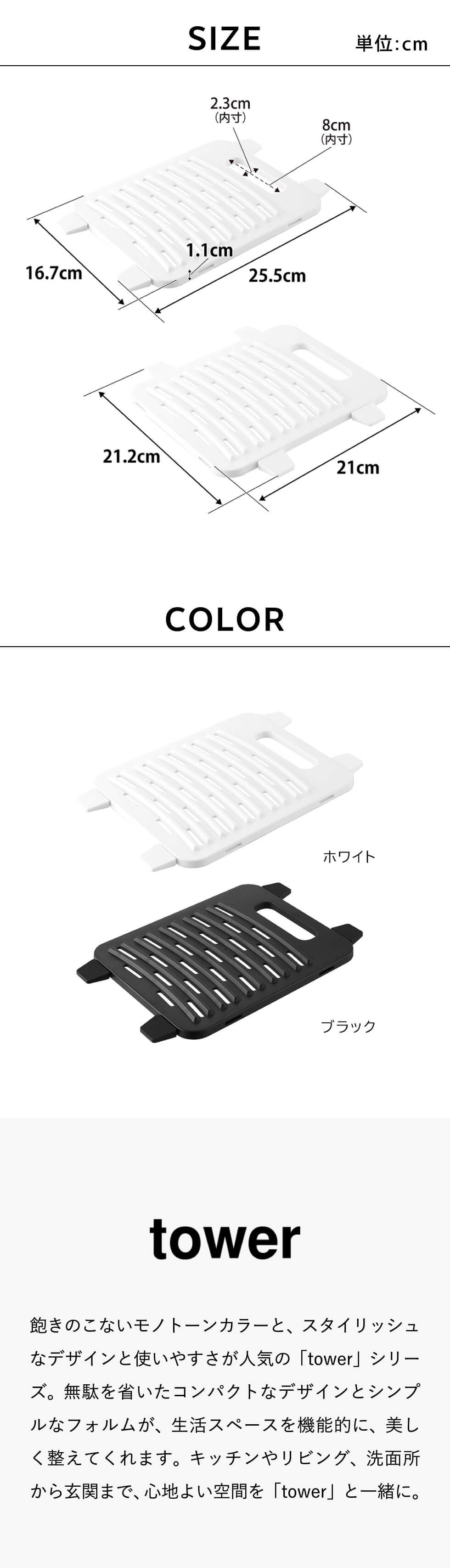 ホワイトとブラックを中心とした飽きのこないモノトーンカラーと、どんなインテリアにもスッと馴染むスタイリッシュなデザイン。そして、とことんシンプルながら、より豊かな暮らしを提案するアイデアがたくさん詰まった、使いやすいアイテムが人気です。無駄を省いたコンパクトなデザインと、シンプルなフォルムが生活スペースを機能的に、美しく整えてくれます。towerのアイテムをライン使いすれば、すっきりとした統一感が生まれ、お洒落でシックな雰囲気を演出します。キッチンやリビング、洗面所から玄関まで揃えたくなるtowerシリーズで、毎日の暮らしを彩る心地よい空間を。