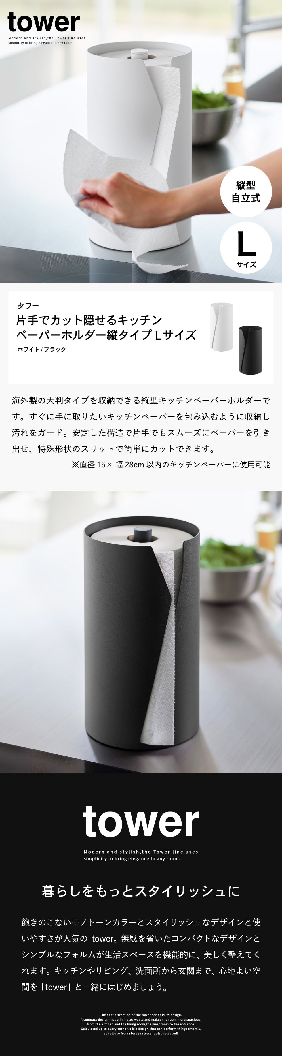 | 片手でカット隠せるキッチンペーパーホルダー タワー 縦タイプ L |