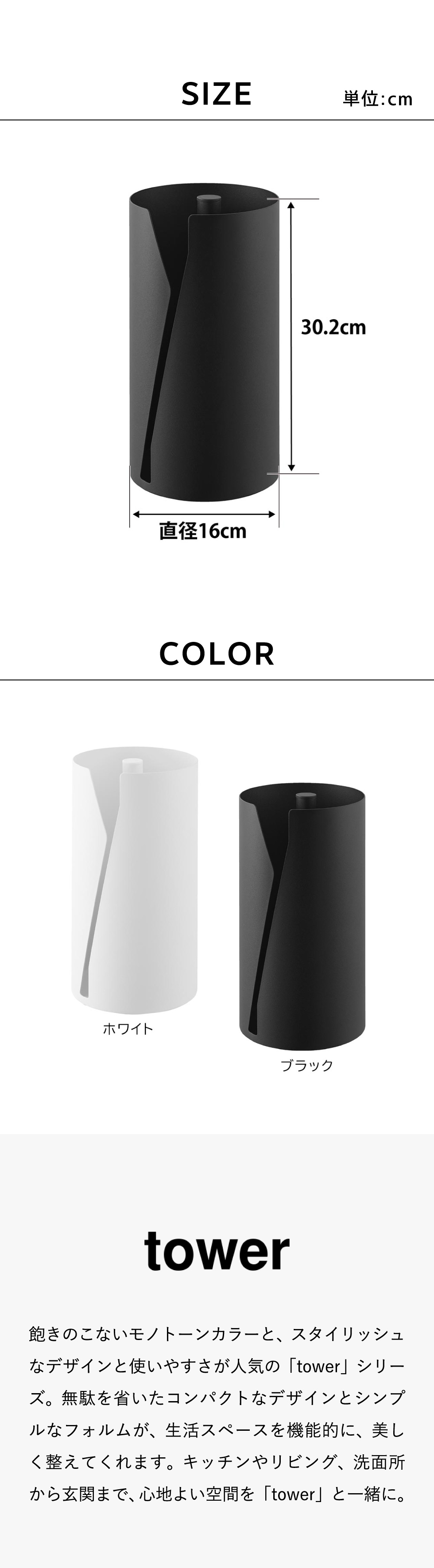ホワイトとブラックを中心とした飽きのこないモノトーンカラーと、どんなインテリアにもスッと馴染むスタイリッシュなデザイン。そして、とことんシンプルながら、より豊かな暮らしを提案するアイデアがたくさん詰まった、使いやすいアイテムが人気です。無駄を省いたコンパクトなデザインと、シンプルなフォルムが生活スペースを機能的に、美しく整えてくれます。towerのアイテムをライン使いすれば、すっきりとした統一感が生まれ、お洒落でシックな雰囲気を演出します。キッチンやリビング、洗面所から玄関まで揃えたくなるtowerシリーズで、毎日の暮らしを彩る心地よい空間を。