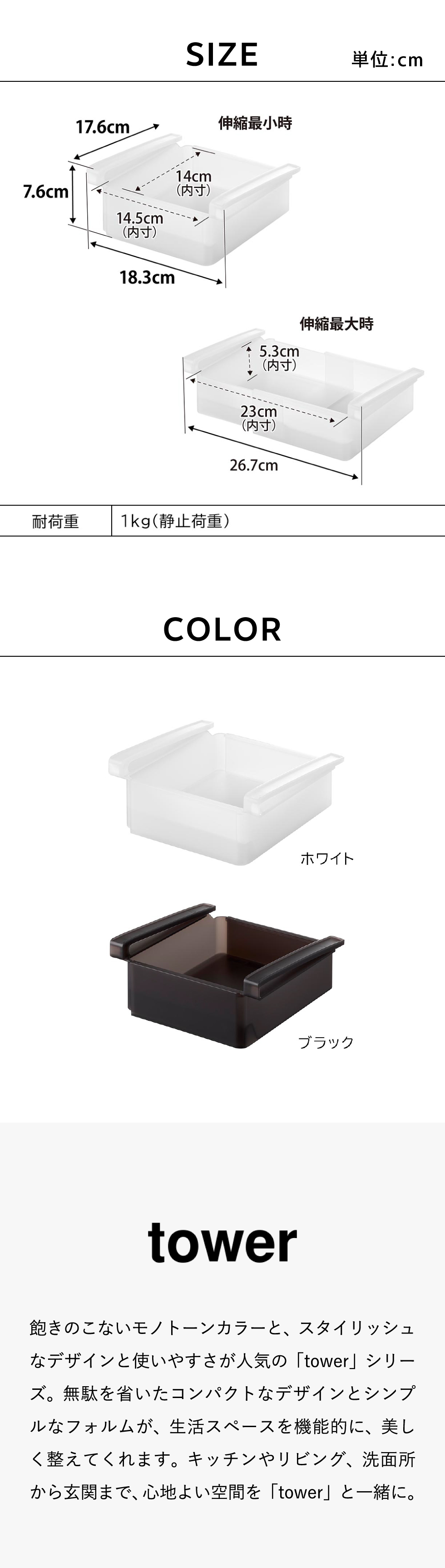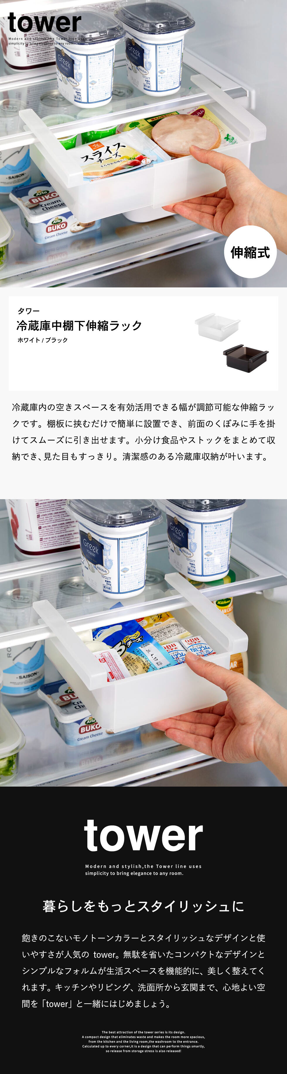 冷蔵庫中棚下伸縮ラック タワー 山崎実業 公式 tower 10213 10214 ホワイト ブラック