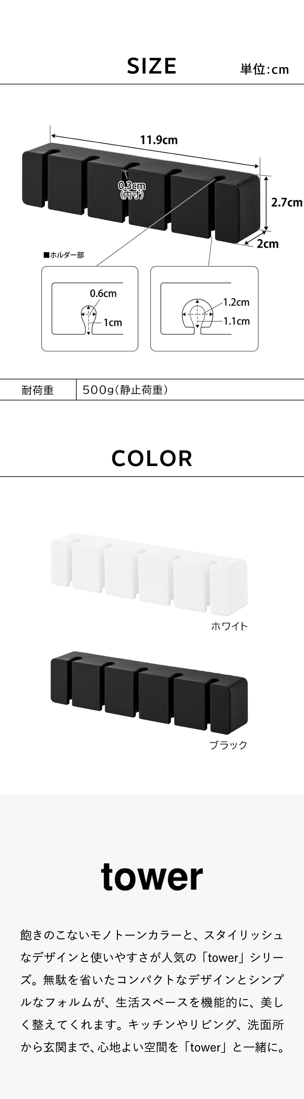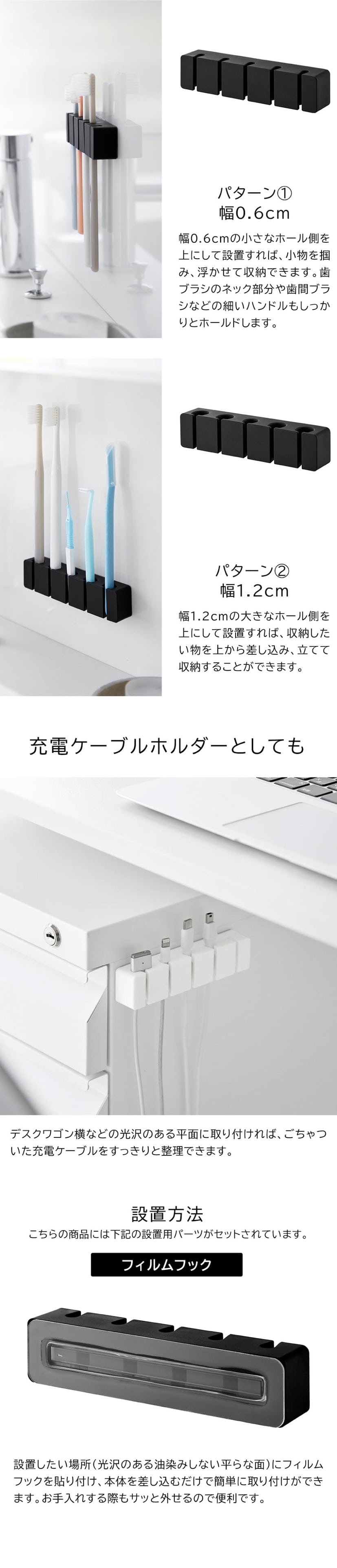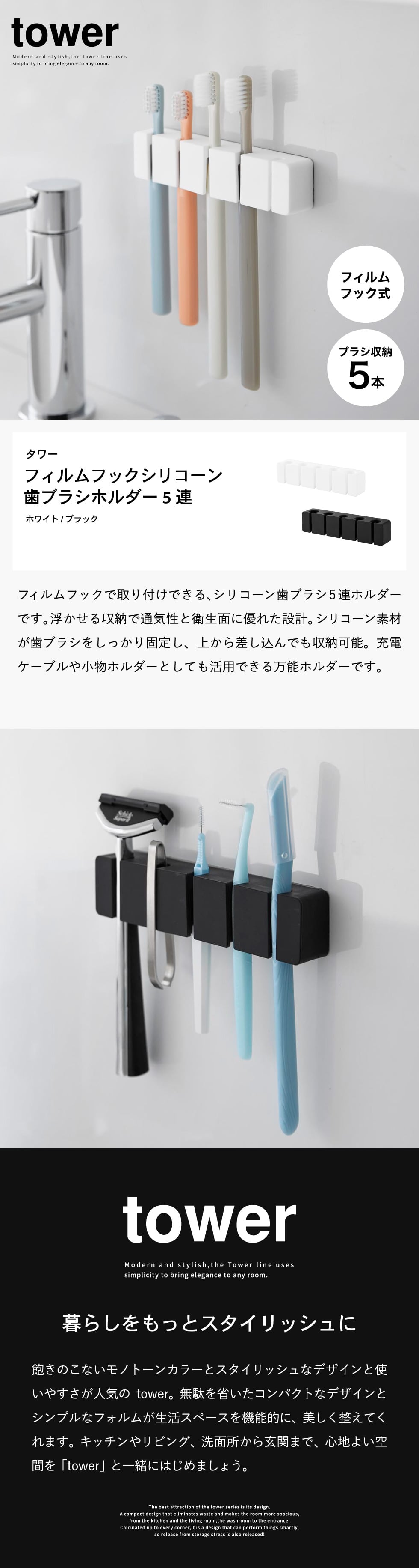 フィルムフックシリコーン歯ブラシホルダー タワー 5連 山崎実業 tower 10052 10053 ホワイト ブラック
