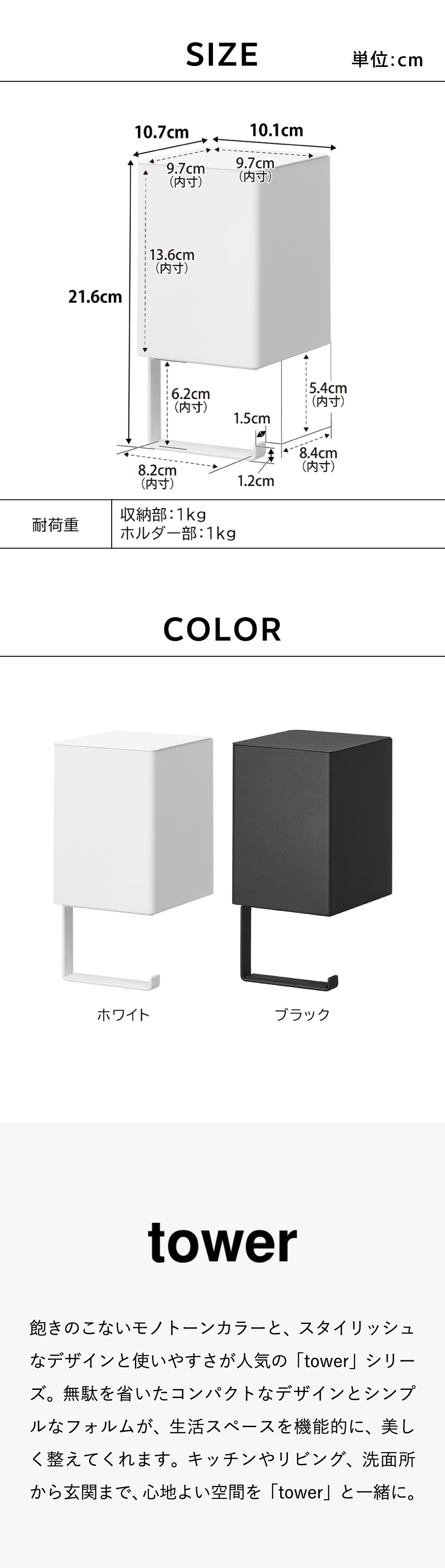 耐荷重 収納部:1kg ホルダー部:1kg (静止荷重) |