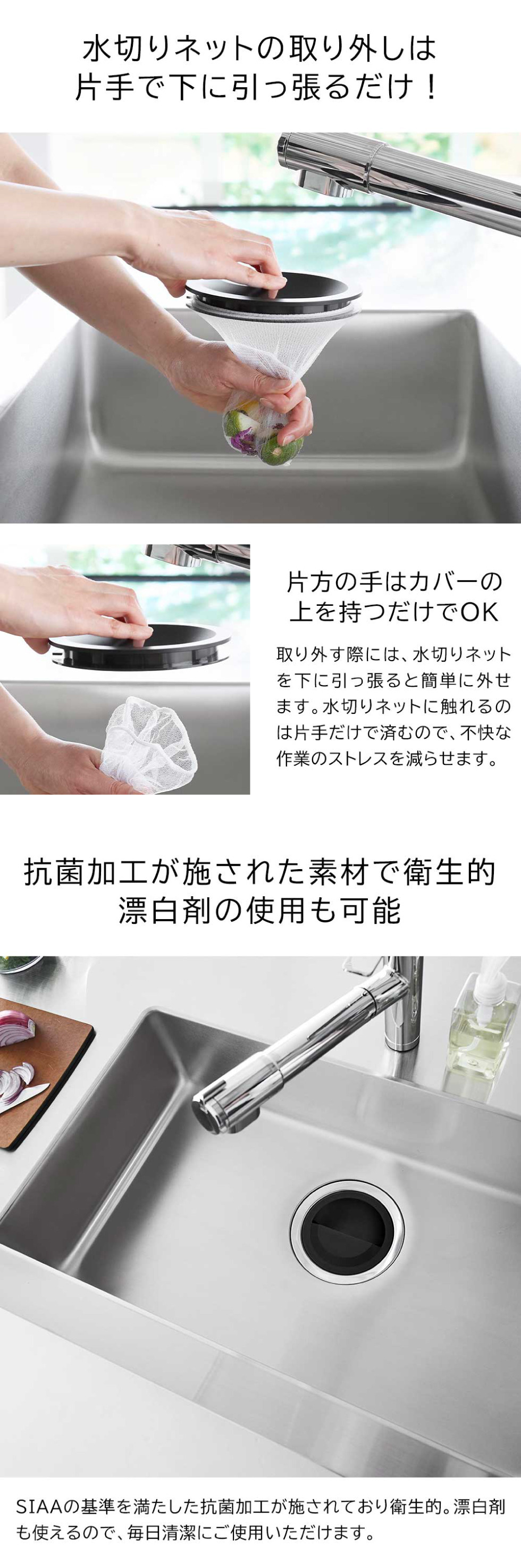 ■設置可能な排水口 直径14.5cm ■SIAA登録番号:JP0123357X0005H ■水切りネットは付属いたしません。 |