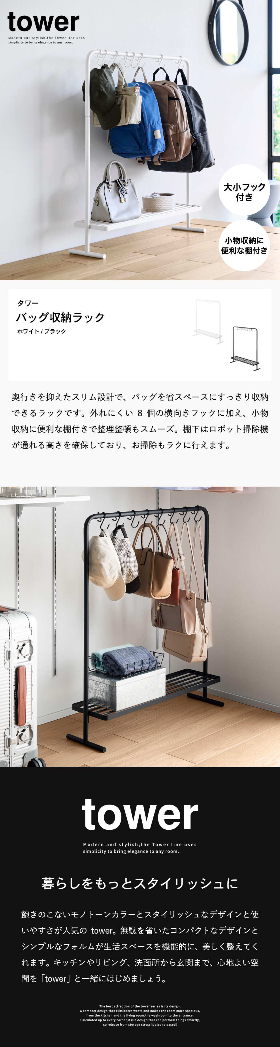 ホワイトとブラックを中心とした飽きのこないモノトーンカラーと、どんなインテリアにもスッと馴染むスタイリッシュなデザイン。そして、とことんシンプルながら、より豊かな暮らしを提案するアイデアがたくさん詰まった、使いやすいアイテムが人気です。無駄を省いたコンパクトなデザインと、シンプルなフォルムが生活スペースを機能的に、美しく整えてくれます。towerのアイテムをライン使いすれば、すっきりとした統一感が生まれ、お洒落でシックな雰囲気を演出します。キッチンやリビング、洗面所から玄関まで揃えたくなるtowerシリーズで、毎日の暮らしを彩る心地よい空間を。