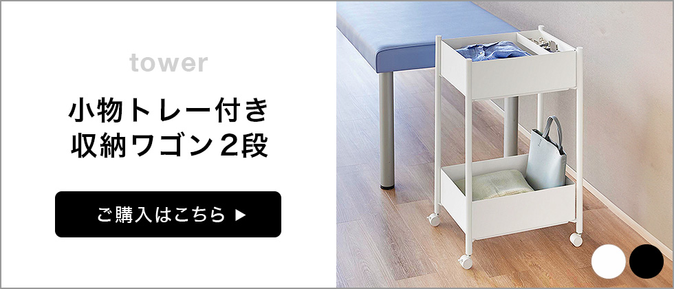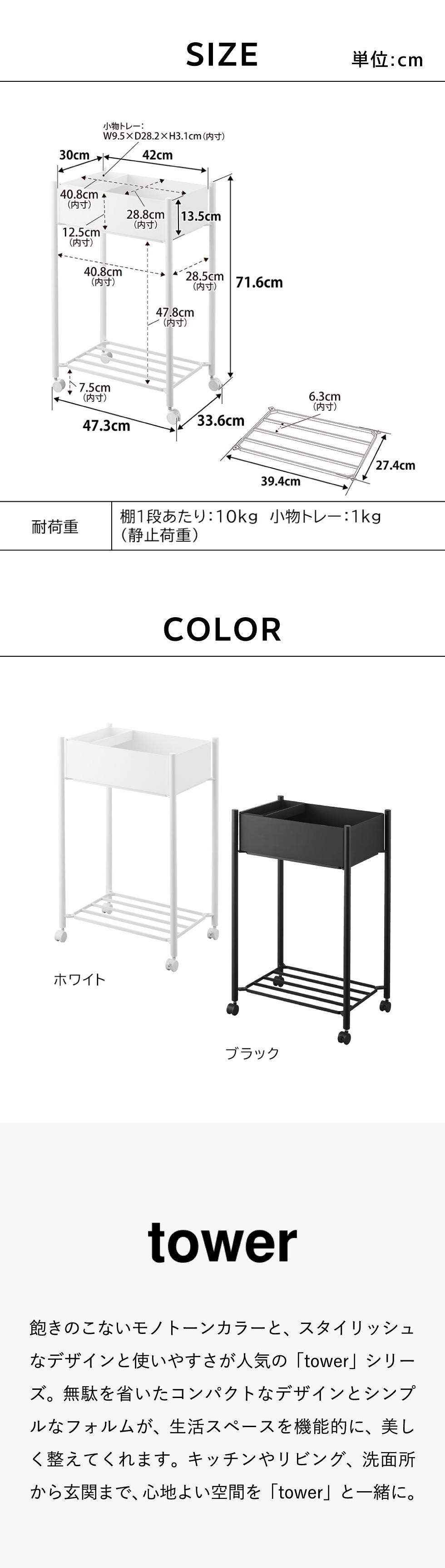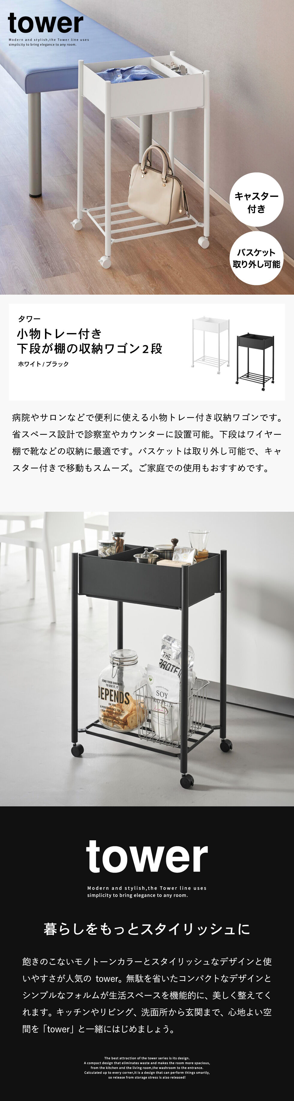 小物トレー付き下段が棚の収納ワゴン 2段 タワー 山崎実業 公式 tower 10185 10186 ホワイト ブラック 送料無料