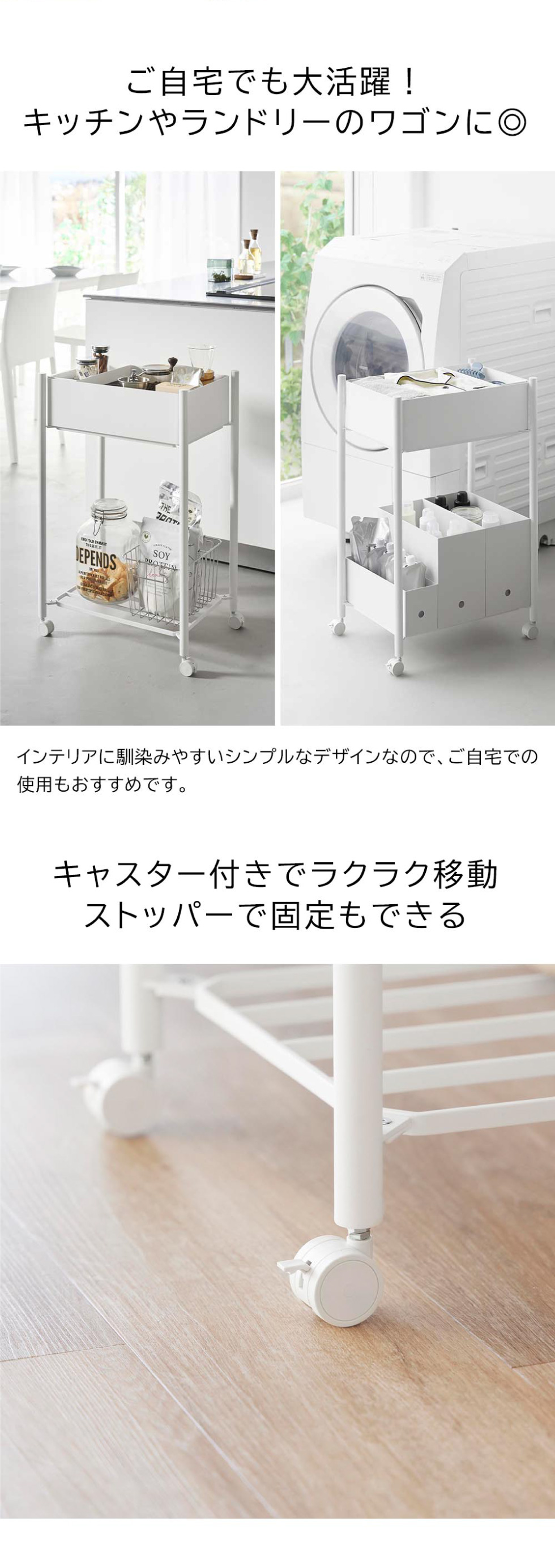 小物トレー付き下段が棚の収納ワゴン 2段 タワー