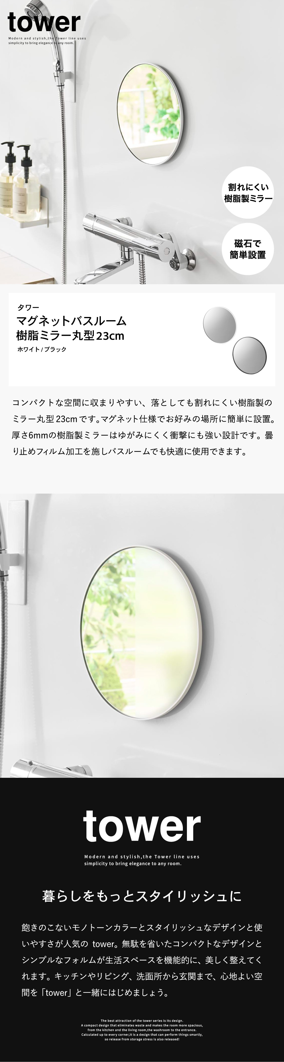 | マグネットバスルーム樹脂ミラー タワー 丸型 23cm |