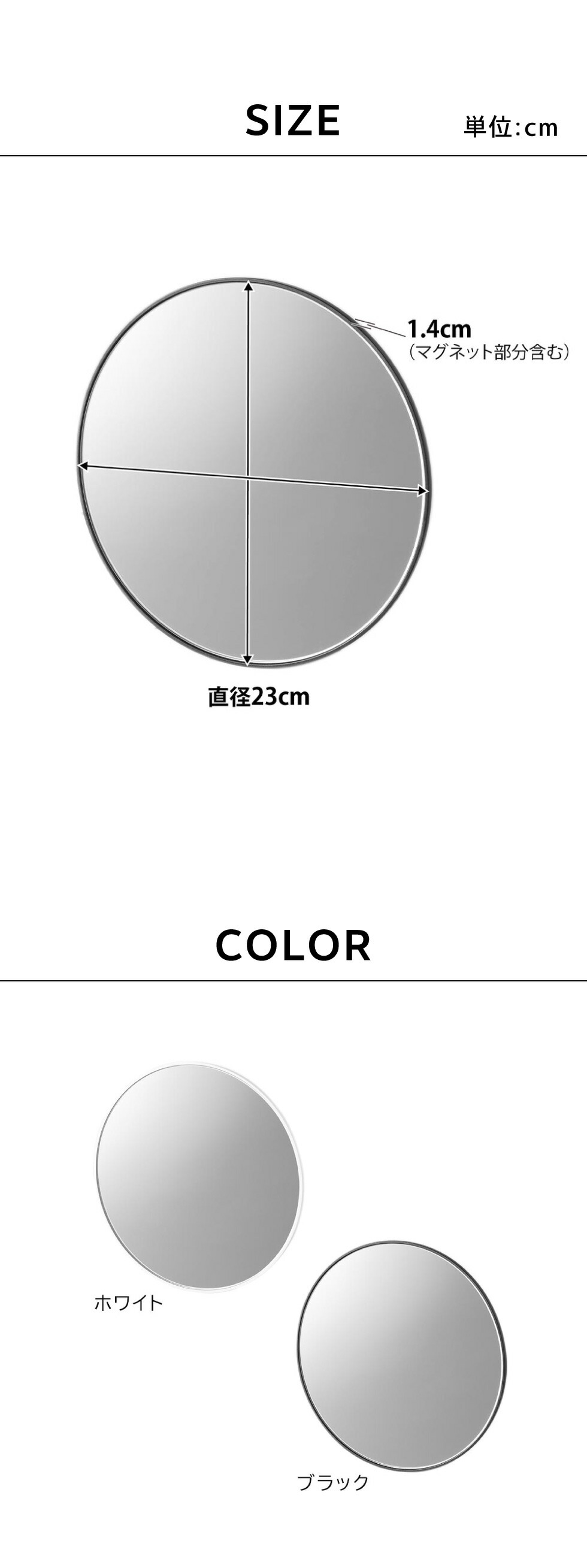 マグネットバスルームミラー タワー 丸型 23cm