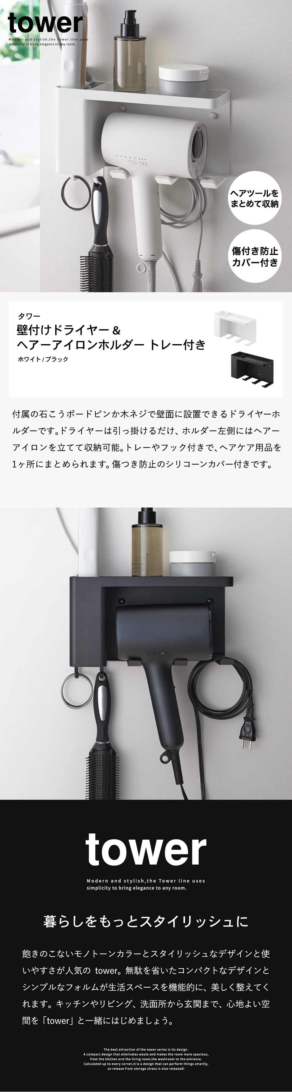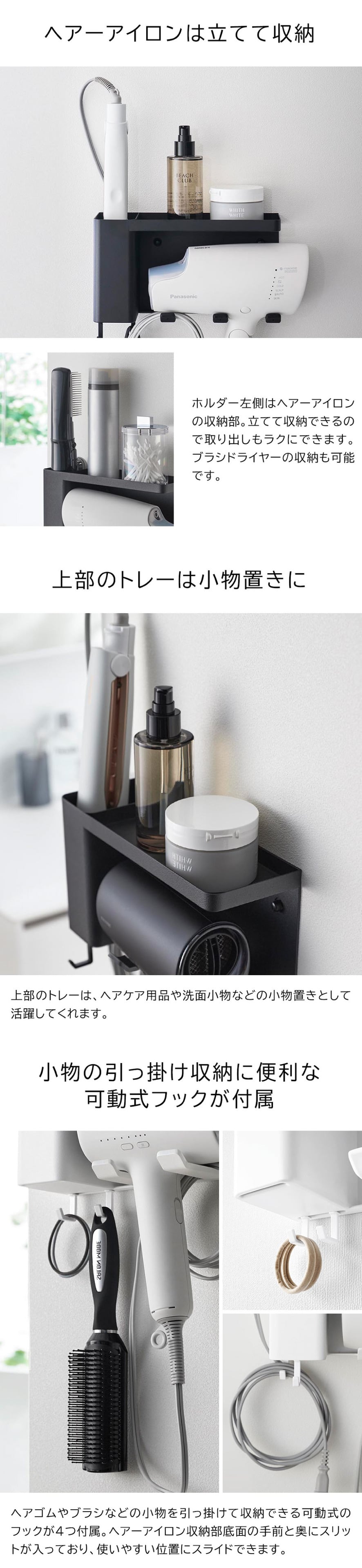 | 壁付けドライヤー&ヘアーアイロンホルダー タワー トレー付き |