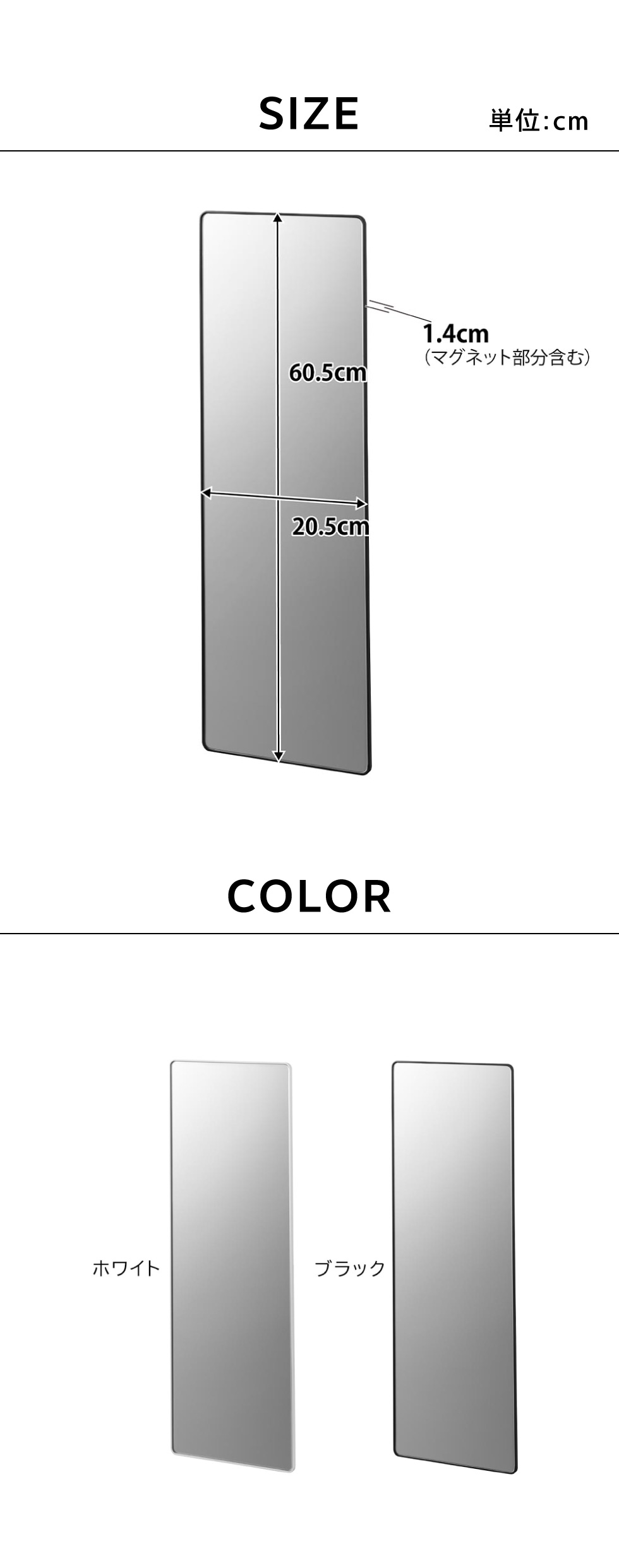マグネットバスルームミラー タワー 角型 ロング