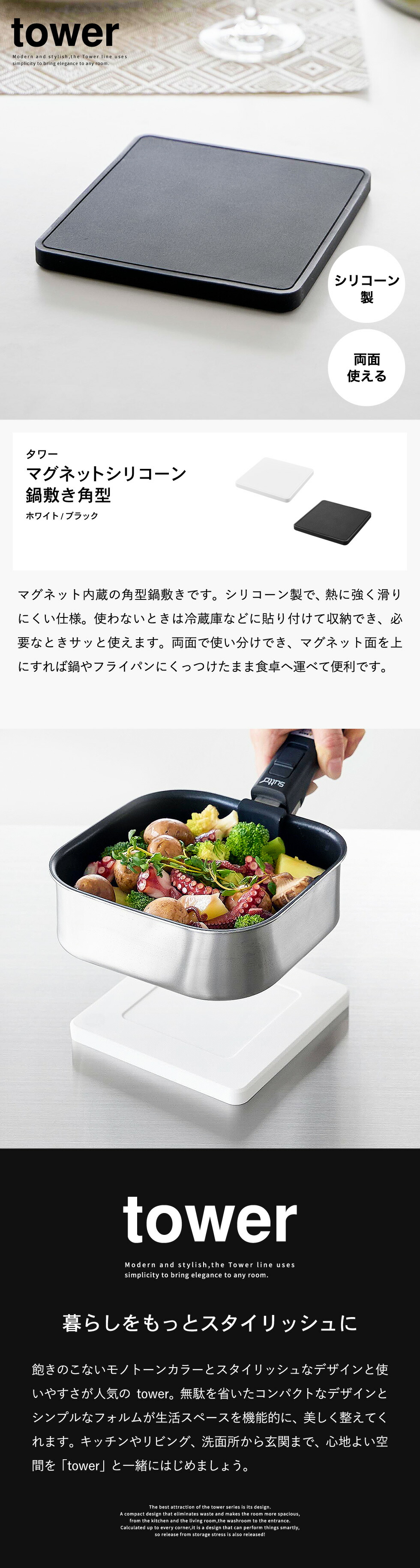 マグネットシリコーン鍋敷き タワー 角型 山崎実業 tower 公式 10320 10321 ホワイト ブラック 送料無料