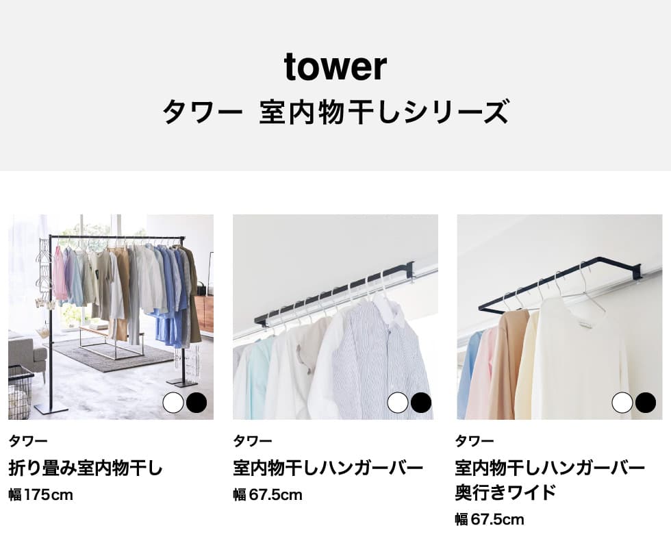 ホワイトとブラックを中心とした飽きのこないモノトーンカラーと、どんなインテリアにもスッと馴染むスタイリッシュなデザイン。そして、とことんシンプルながら、より豊かな暮らしを提案するアイデアがたくさん詰まった、使いやすいアイテムが人気です。無駄を省いたコンパクトなデザインと、シンプルなフォルムが生活スペースを機能的に、美しく整えてくれます。towerのアイテムをライン使いすれば、すっきりとした統一感が生まれ、お洒落でシックな雰囲気を演出します。キッチンやリビング、洗面所から玄関まで揃えたくなるtowerシリーズで、毎日の暮らしを彩る心地よい空間を。