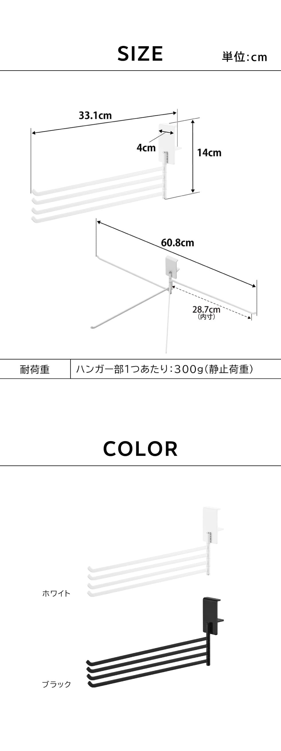 ハンガー部1つあたり:300g(静止荷重)