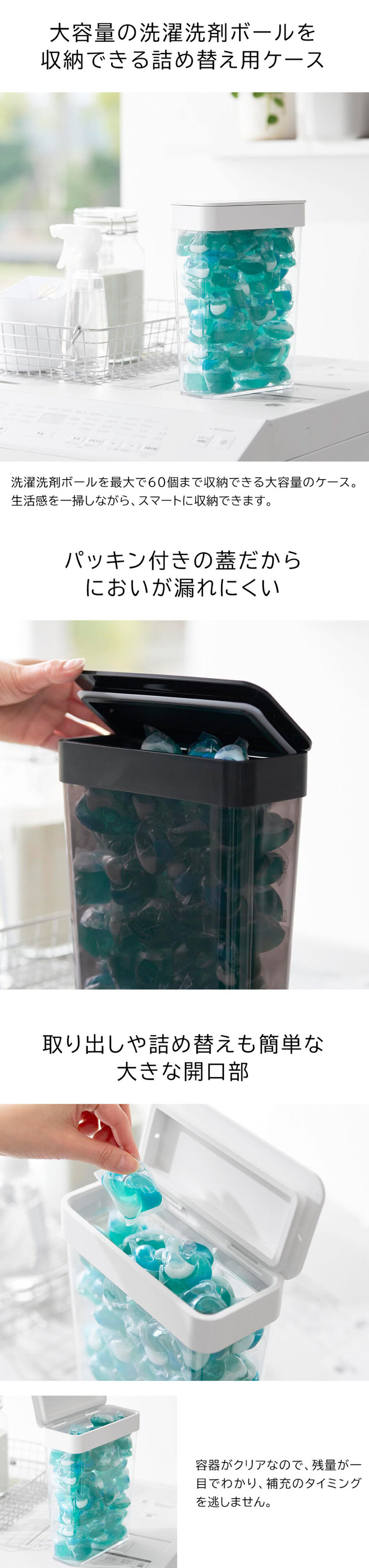 洗濯洗剤ボールが60個入る、大容量のパッキン付き収納ケースです。パッキン付きなのでにおいが漏れにくく、しっかりと収納することができます。洗濯洗剤ボールだけでなく、大容量の粉末洗剤の収納にも便利。パーツはすべて分解して洗えるので、お手入れも簡単。 ※洗濯洗剤ボールのサイズや形状によっては60個を収納できない場合があります。