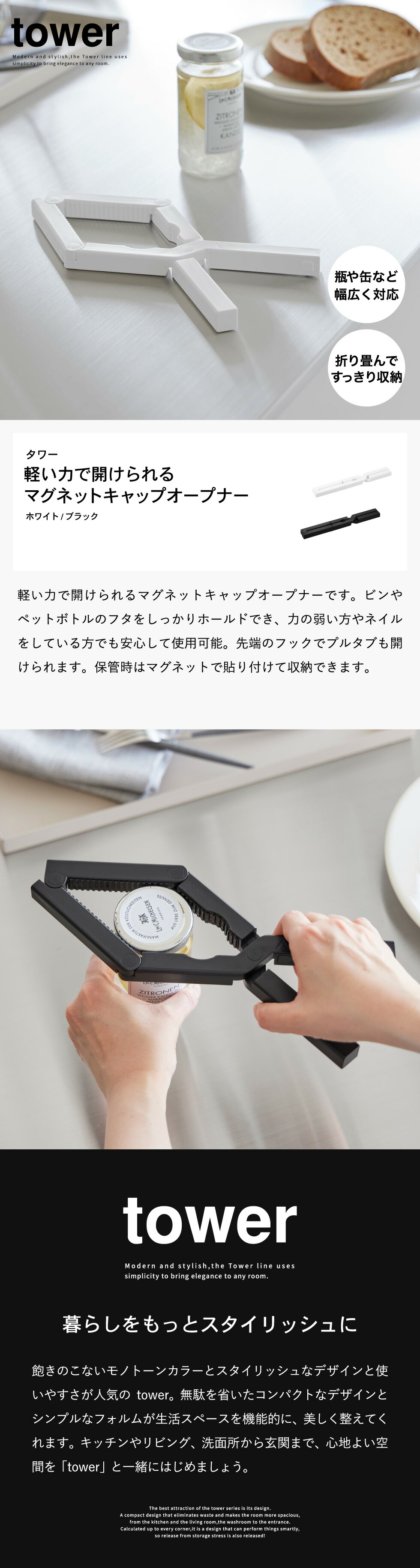 軽い力で開けられるマグネットキャップオープナー タワー