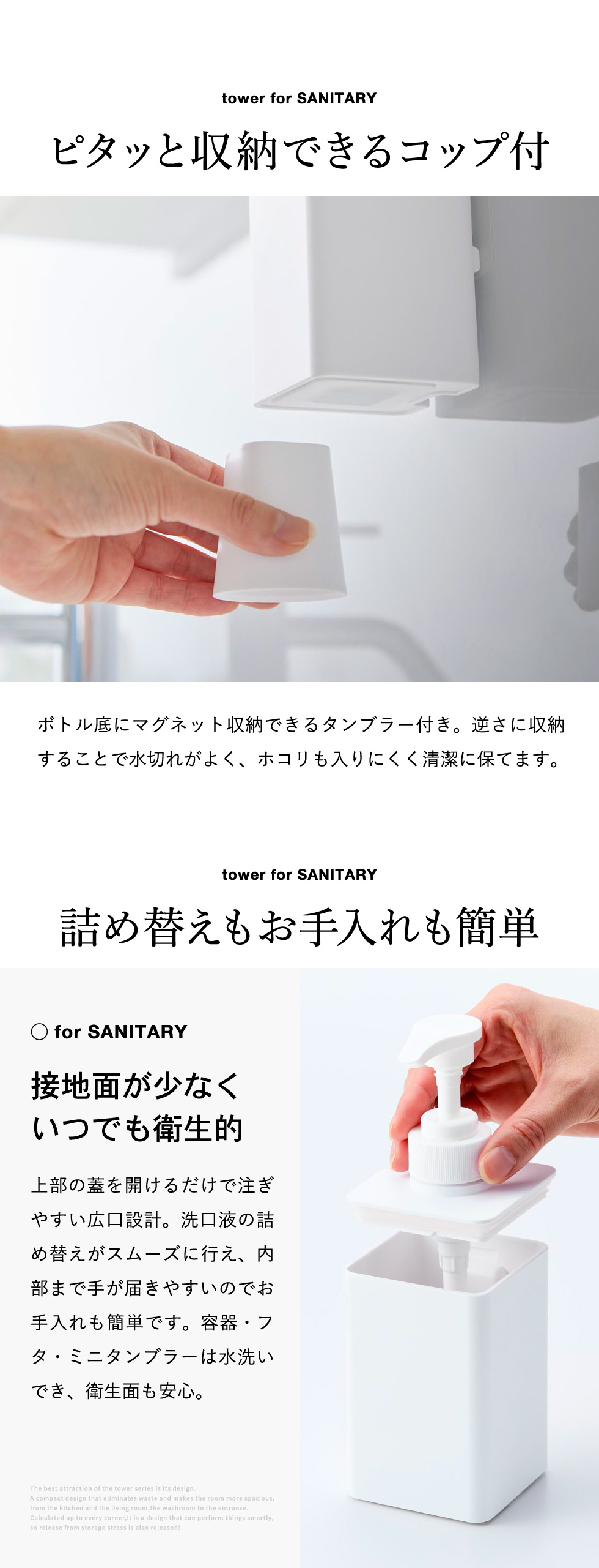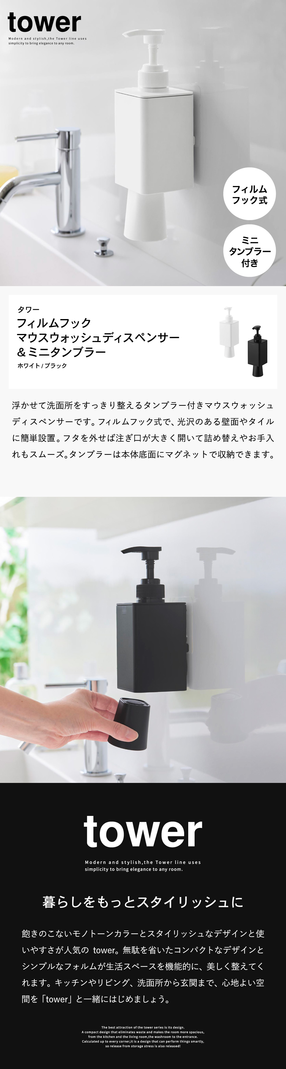 山崎実業 tower フィルムフックマウスウォッシュディスペンサー&ミニタンブラー タワー 公式 10539 10540 ホワイト ブラック 送料無料