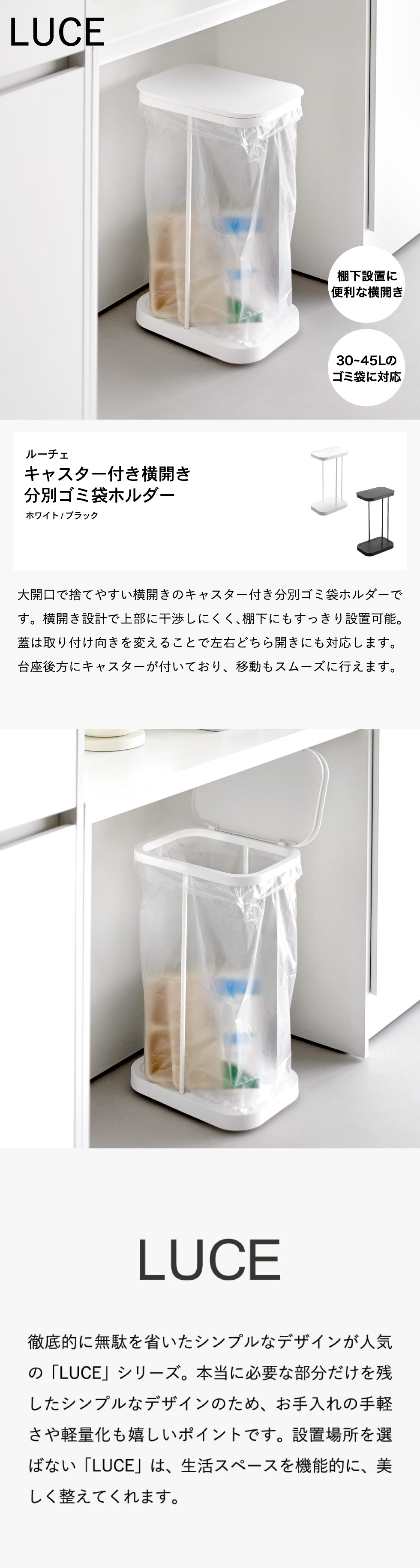 キャスター付き横開き分別ゴミ袋ホルダー ルーチェ