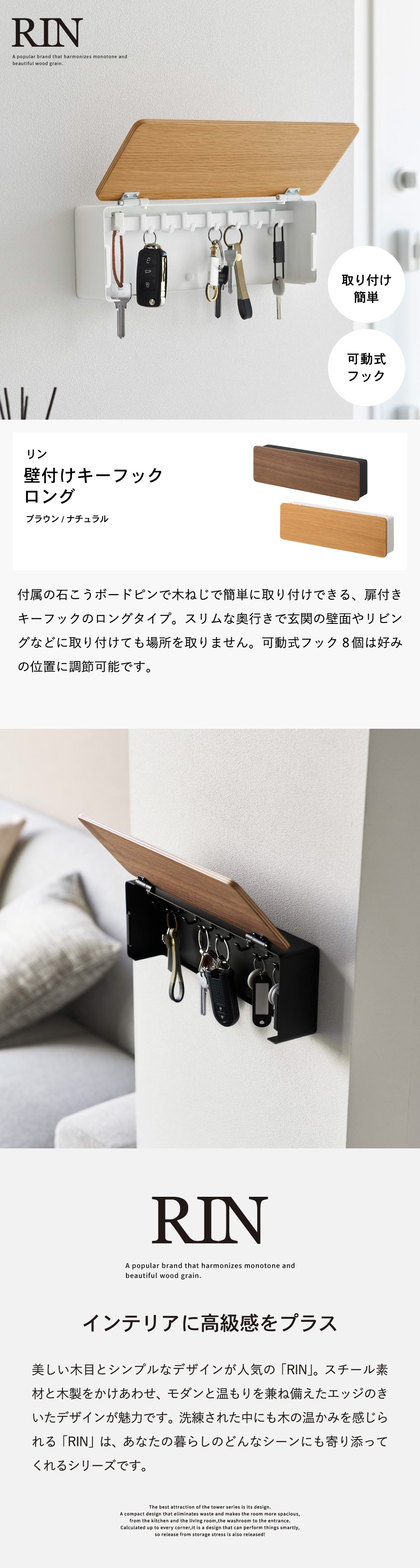 美しくあたたかい雰囲気の優しい木目と、シンプルでナチュラルさを持つデザイン。 スチール素材と木製をかけあわせ、モダンと温もりを兼ね備えたエッジの効いたデザインが魅力です。そして、シンプルながら、より豊かな暮らしを提案するアイデアがたくさん詰まった、使いやすさが人気のRINシリーズ。RINのアイテムをライン使いすれば、すっきりとした統一感が生まれ、洗練された中にもウッド調の温かみを感じられる落ち着いた雰囲気を演出します。キッチンやリビング、洗面所から玄関まで揃えたくなる高い機能性のアイテムで、毎日の暮らしを彩る心地よい空間を。