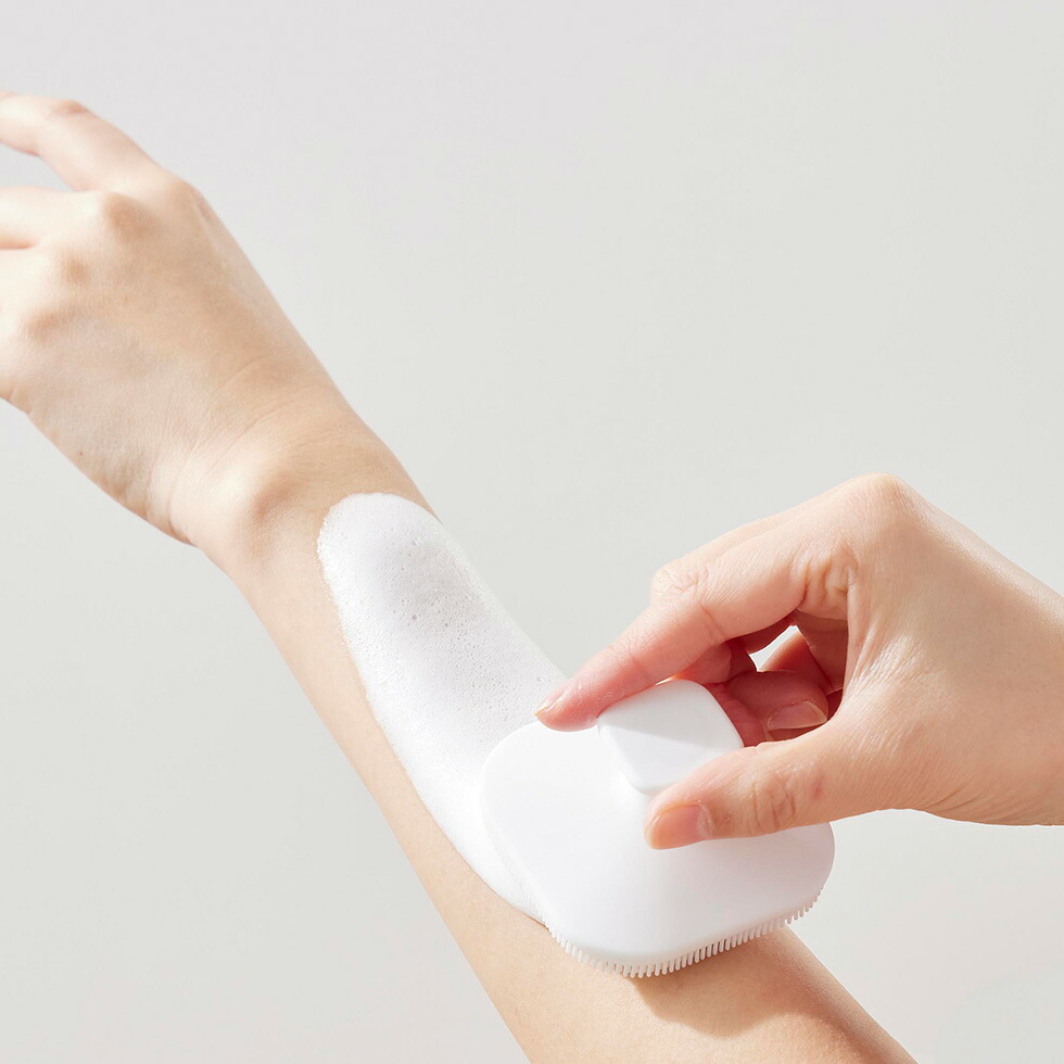 マグネットで浮かせて、簡単収納。きめ細かく泡立つ、やわらかいシリコーン製のフェイシャルブラシです。手に収まるサイズ感で、肌にやさしく洗顔できます。「フィルムシートマグネット用ベース タワー(別売)」を使用すれば、タイルなどの壁面にも収納可能です。