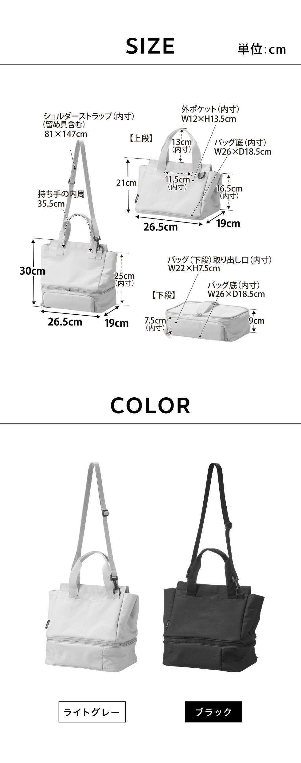 ●商品サイズ: W26.5×D19×H30cm(持ち手・ショルダーストラップ含まず)、バッグ(上段):W26.5×D19×H21cm、バッグ(下段):W26.5×D19×H9cm