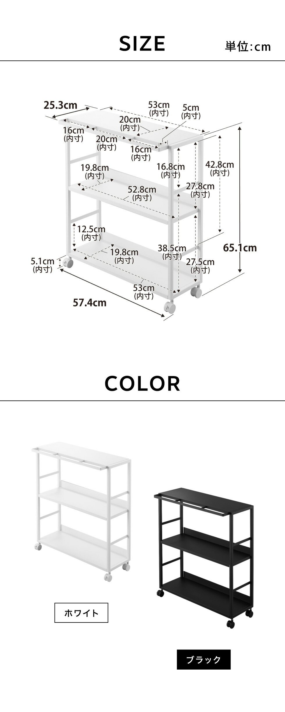 ●内寸サイズ:約 天板:W53×D20cm 可動棚板:W52.8×D19.8cm 底板:W53×D19.8cm