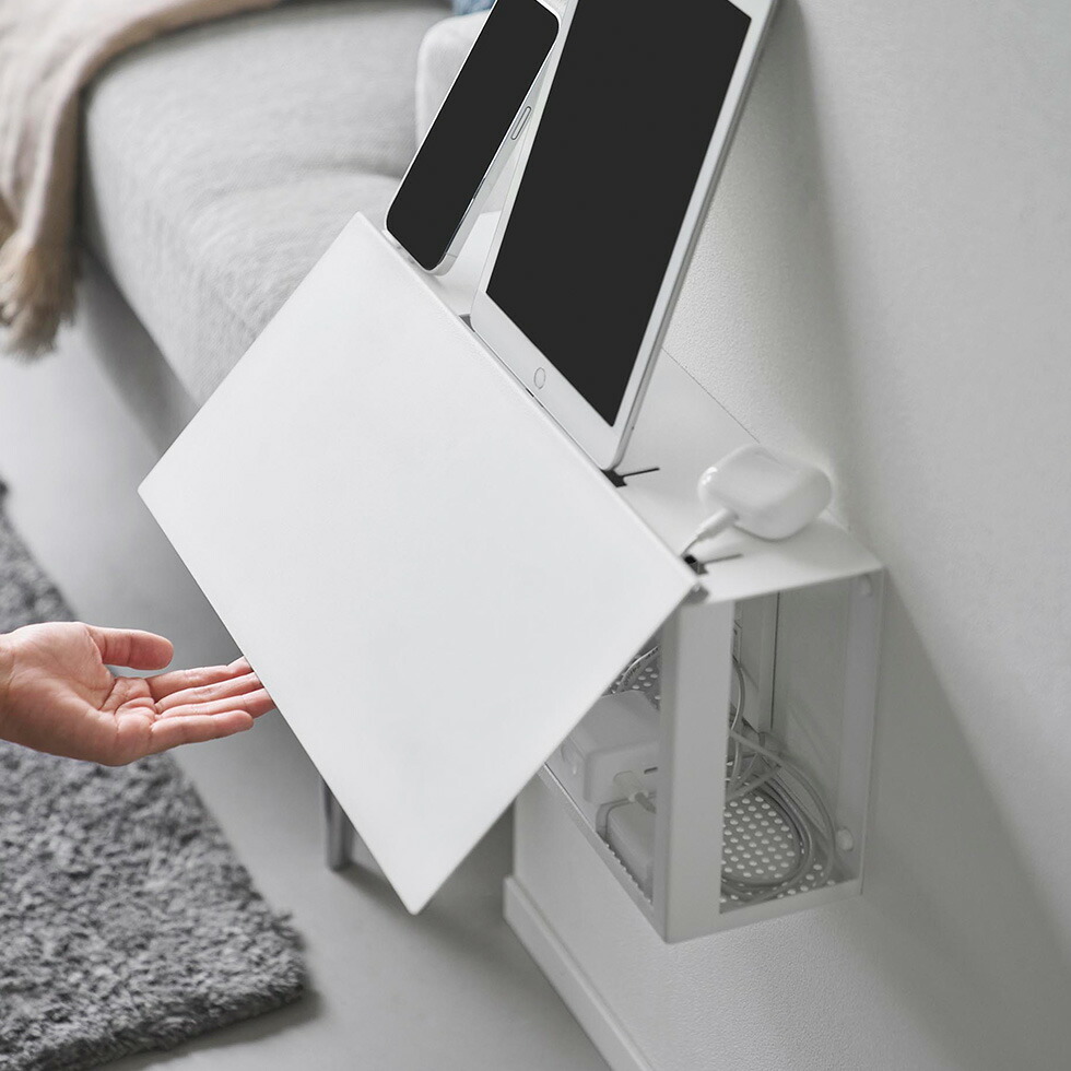 置き場所に困るルーターやケーブルをコンセントごとすっきり隠して収納できる壁付けラック。天面は小物置きとしても活用可能。石こうボード壁対応 スマホ タブレット イヤホン