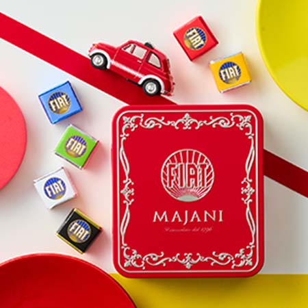 オール新車。マイアーニの4層チョコレートと、FIATのミニカーが缶に入ったギフト。2026年のFIATミニカーのデザインを一新!コレクションしたくなる可愛さです。マイアーニ FIATチョコレート&ミニカーセット3,000円