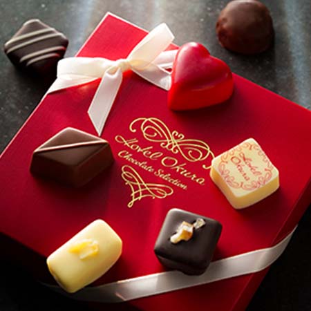 気持ちを伝える。真っ赤な箱に、リボンをかけて。バレンタインにぴったりなホテルオークラのスペシャルショコラ。ホテルの品格漂う確かな味わいが、あなたの気持ちを伝えます。スペシャルショコラ 9個入1,782円