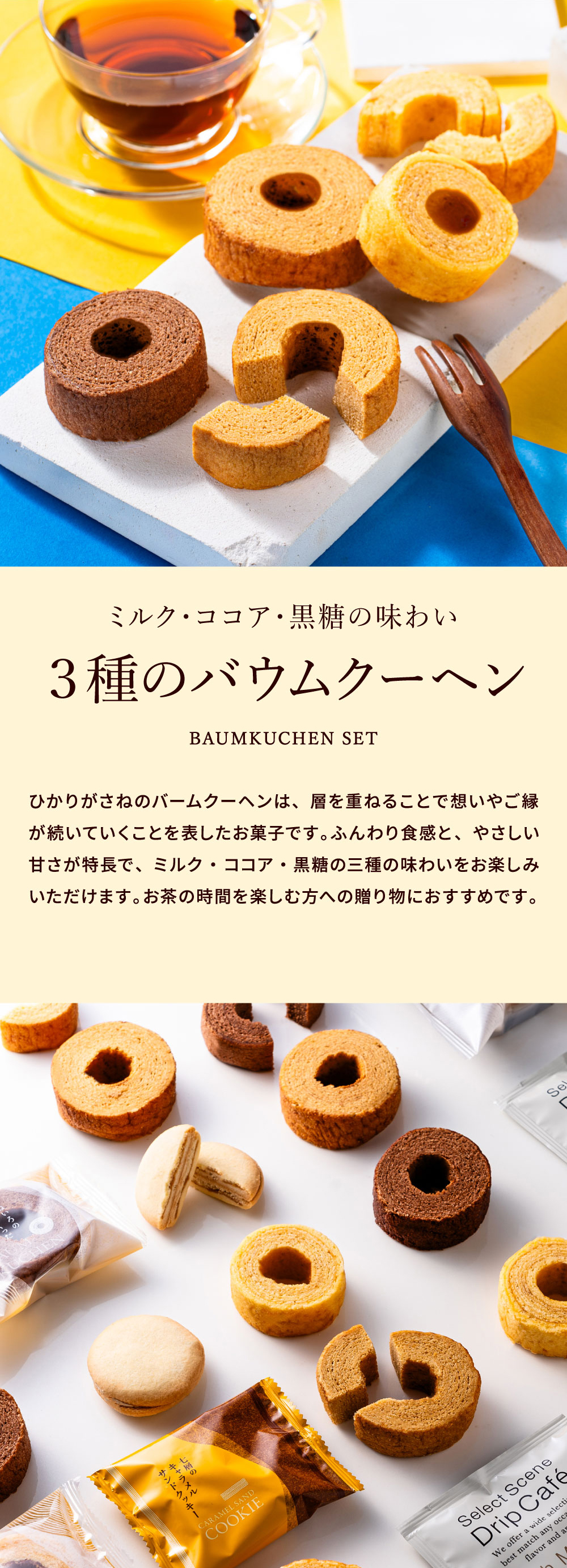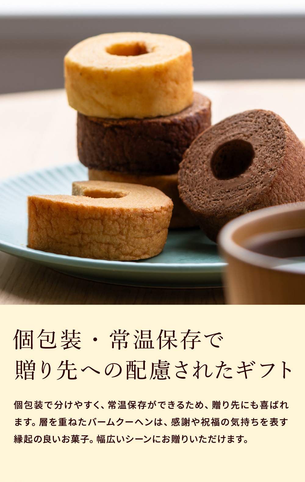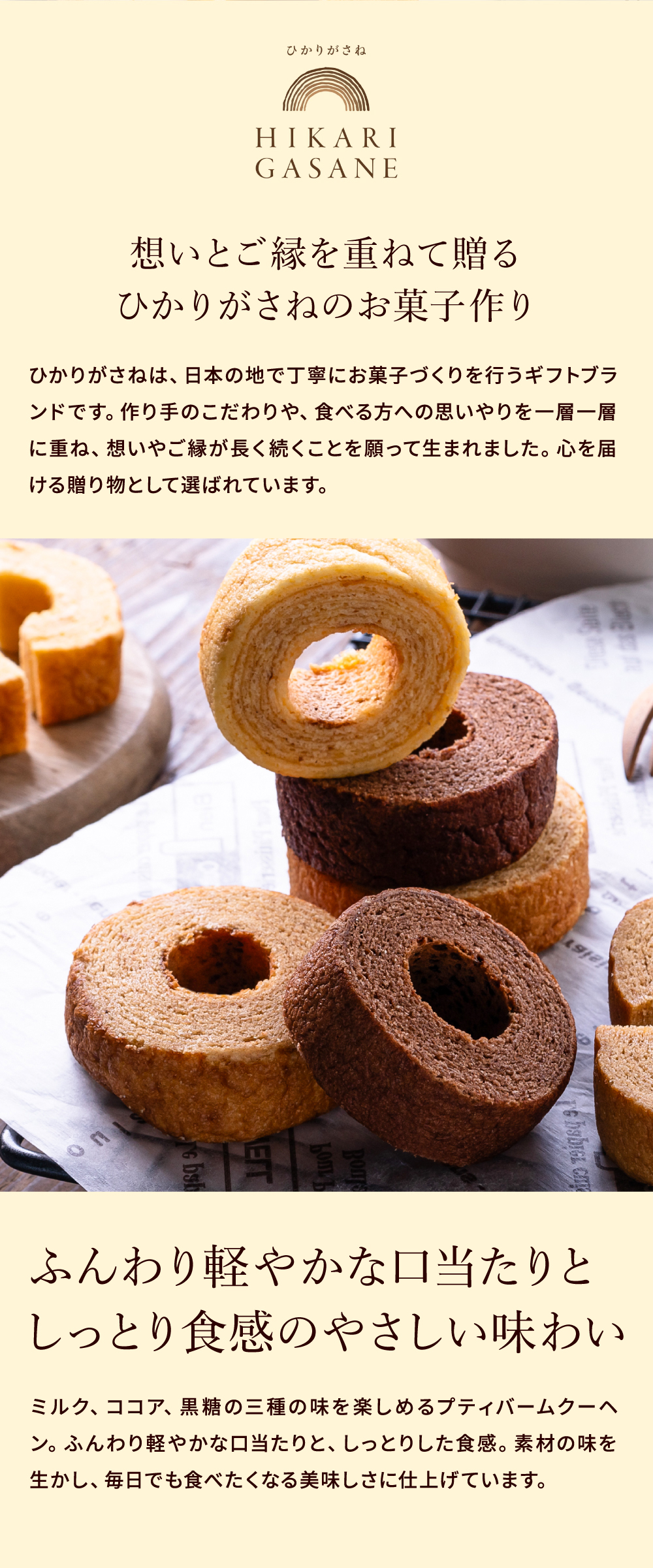 ●内容量:ふんわりバームクーヘン(ミルク・黒糖×各2個、ココア×1個)