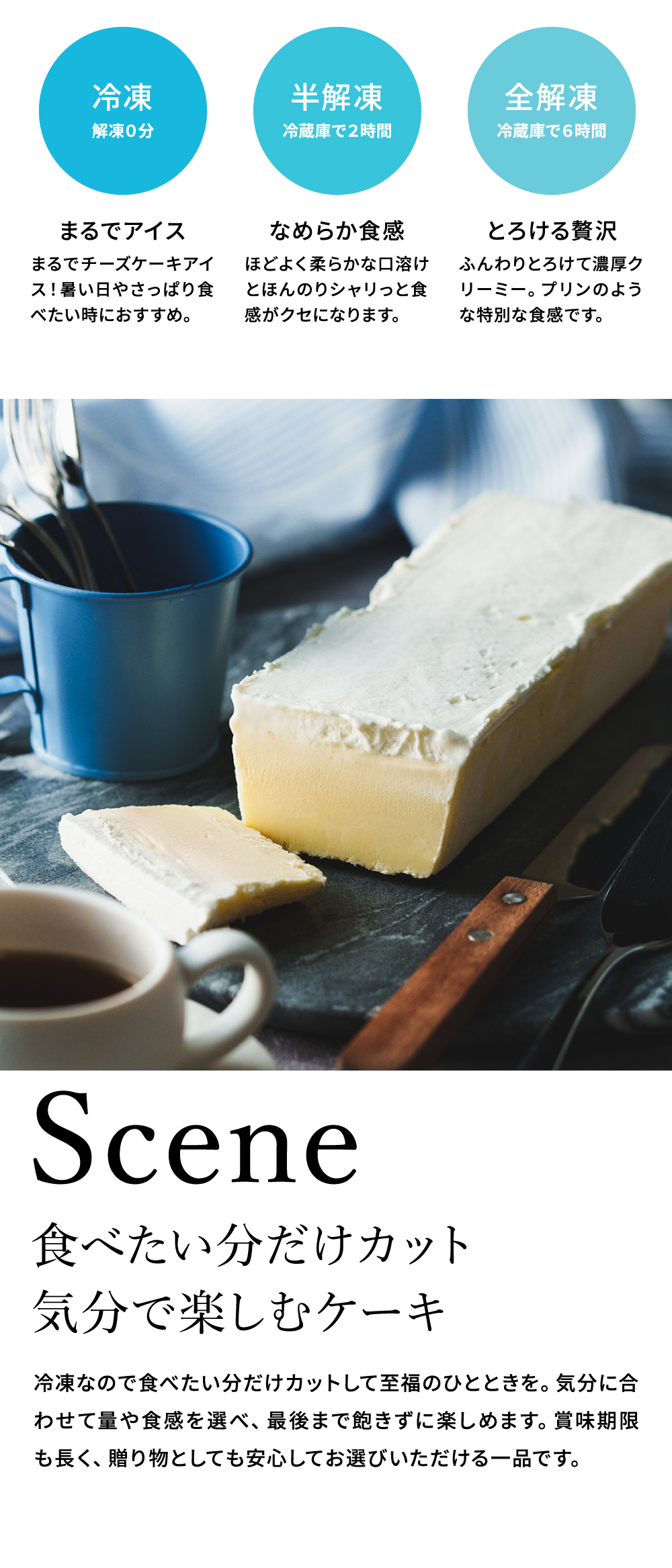 ●内容量:1個 ●賞味期限まで60日以上の商品を発送 ●アレルゲン(特定原材料等28品目):乳成分・卵・大豆 ●原材料:乳等を主要原料とする食品(国内製造)、牛乳、ナチュラルチーズ、砂糖、卵、水あめ、澱粉/乳化剤、ホエイソルト、香料、セルロース、pH調整剤、安定剤(加工デンプン、増粘多糖類)、メタリン酸Na、(一部に乳成分・卵・大豆を含む) ●箱サイズ:約幅22×幅8.2×高さ6.8cm ●冷凍便でお届けします