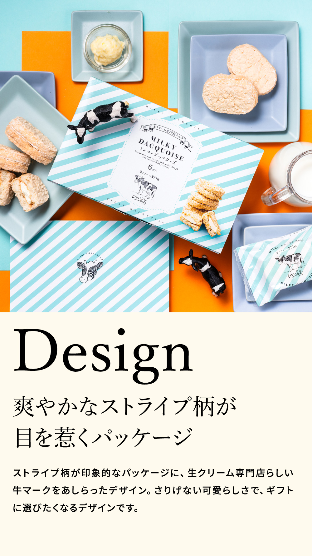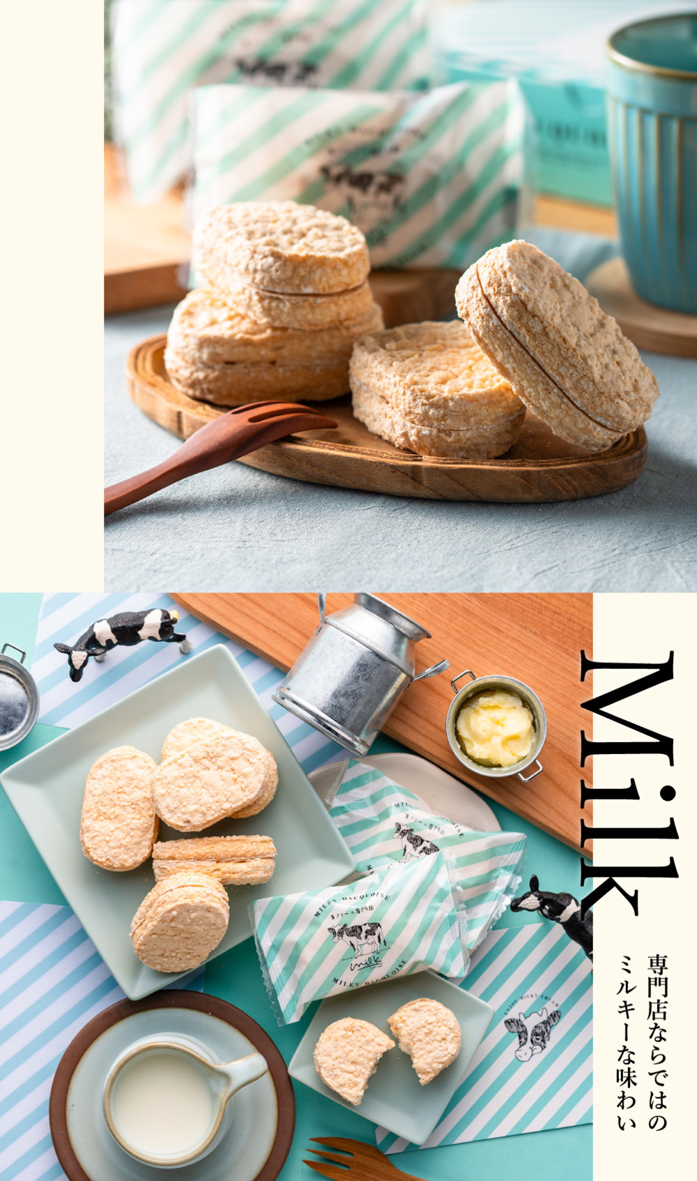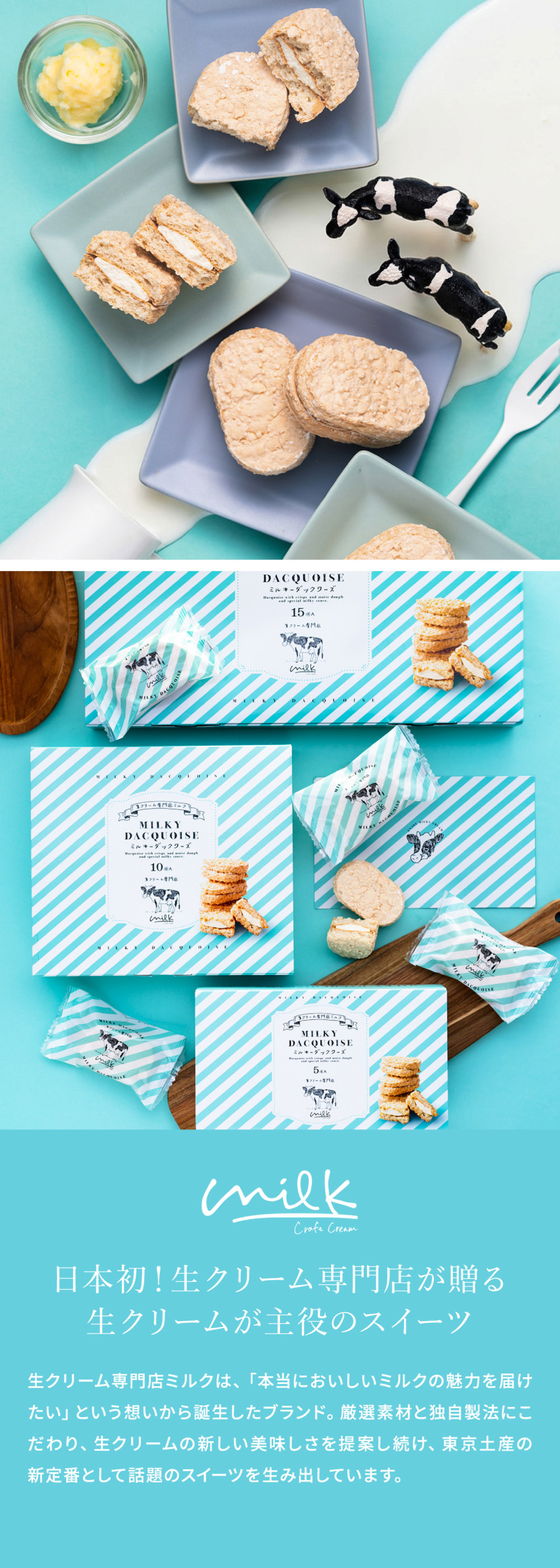 さっくり食感のダックワーズに、滑らかな特製ミルキークリームをはさんだ飽きのこない美味しさをお届けします。